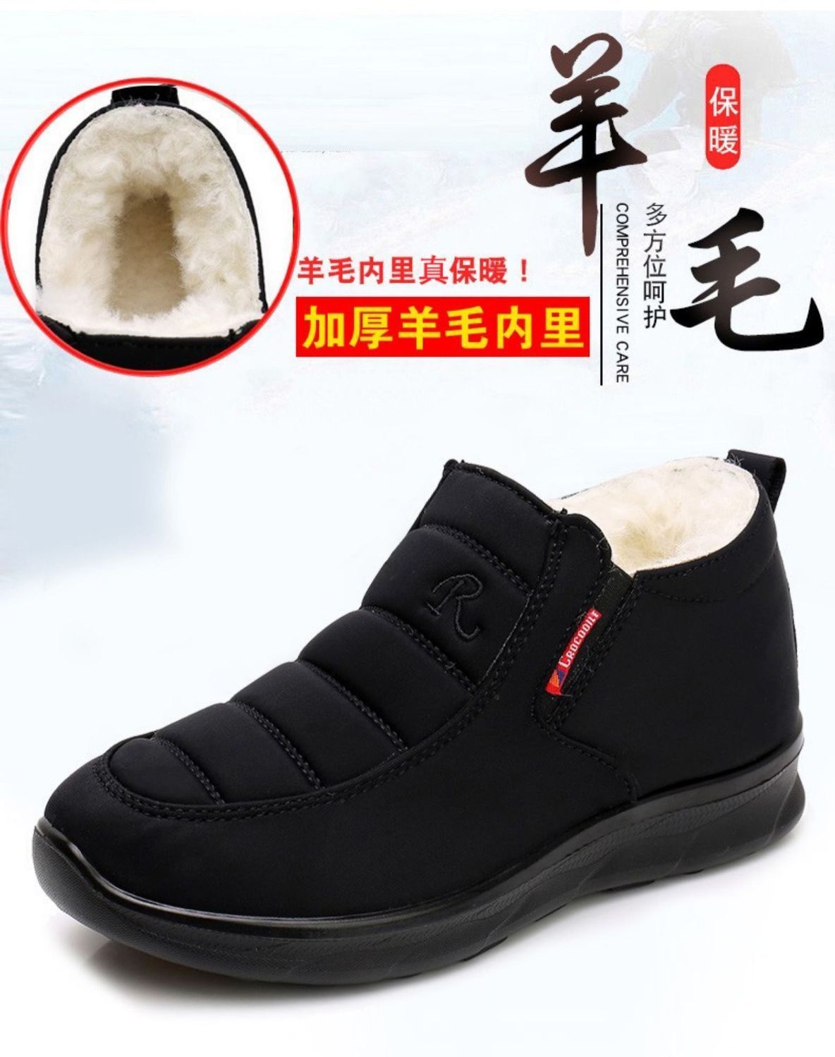 绵羊毛冬季棉鞋加厚加绒中老年北京保暖布鞋老人防滑雪地妈妈鞋