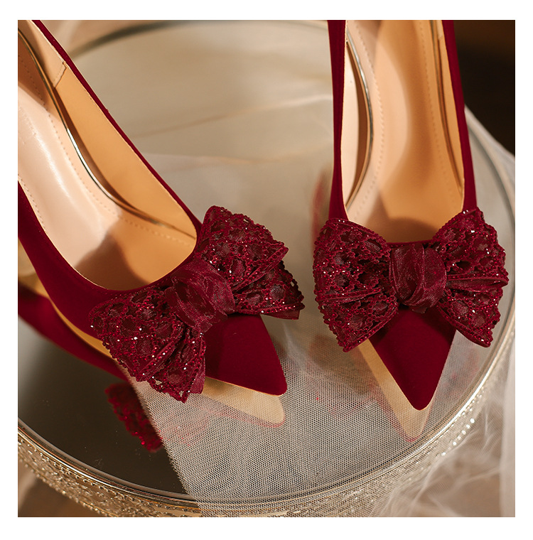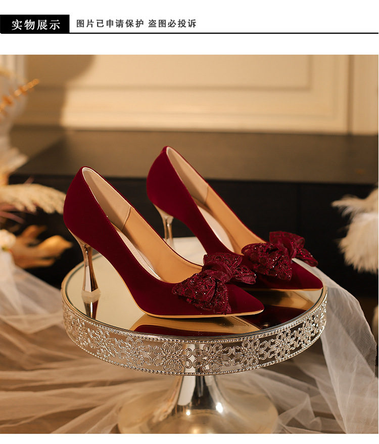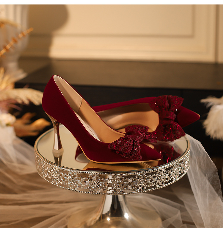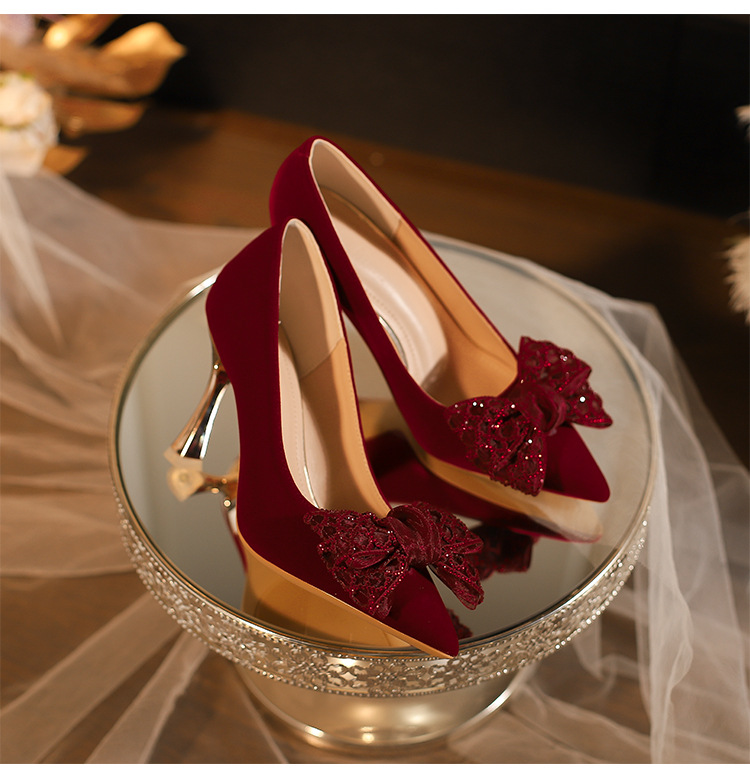 女性のための結婚式の靴 2025 新しいブライダルシューズワインレッド Xiuhe ウェディングドレスツーウェアハイヒールフレンチウェディング乾杯赤い靴