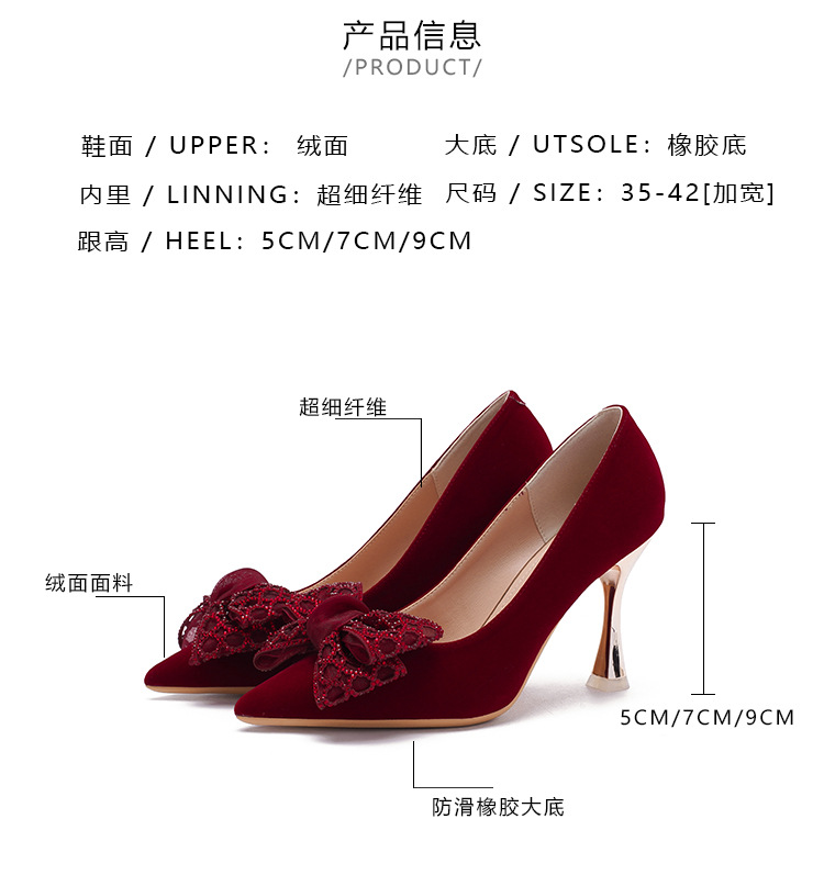 大码婚鞋新娘鞋红色高跟鞋女胖脚宽脚尖头女鞋34到42