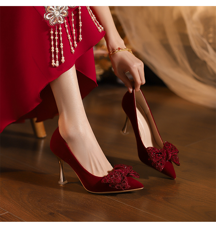 2025春季新款新娘鞋不累脚婚鞋秀禾婚纱两穿法式高跟鞋女细跟尖头