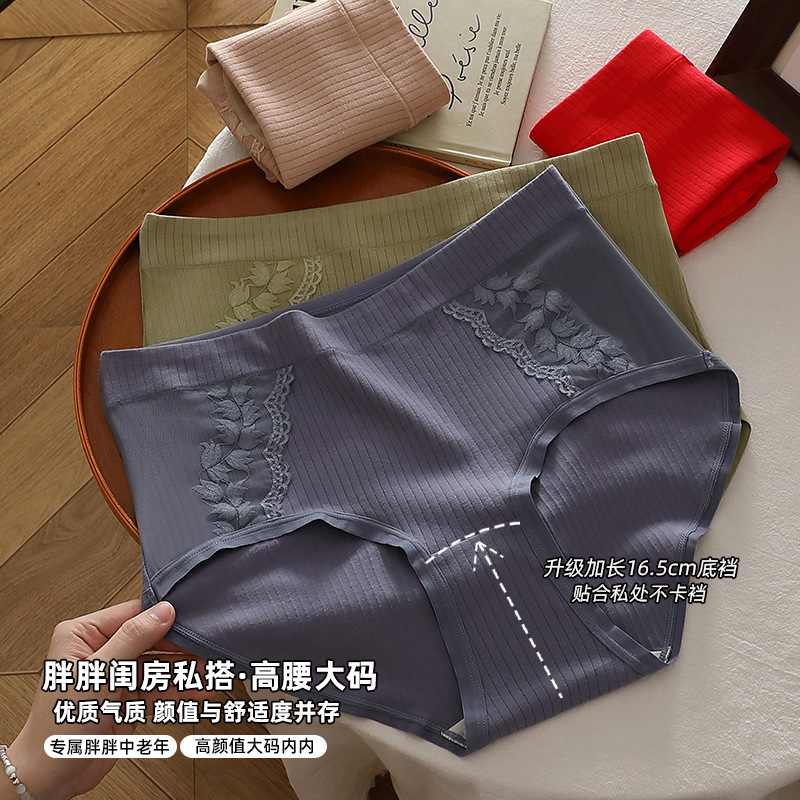 提花蕾丝网纯棉大码女士内裤高腰提臀舒适全包臀加大300斤三角裤