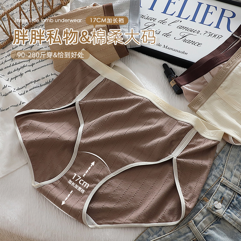 小熊&英文字母点缀撞色简约大码内裤女50支RC棉胖MM300斤三角裤