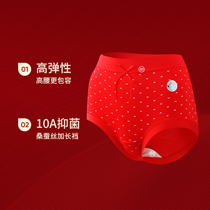 好运来本命年红色内裤结婚纯棉蕾丝边60支竹纤维高腰大码三角内裤