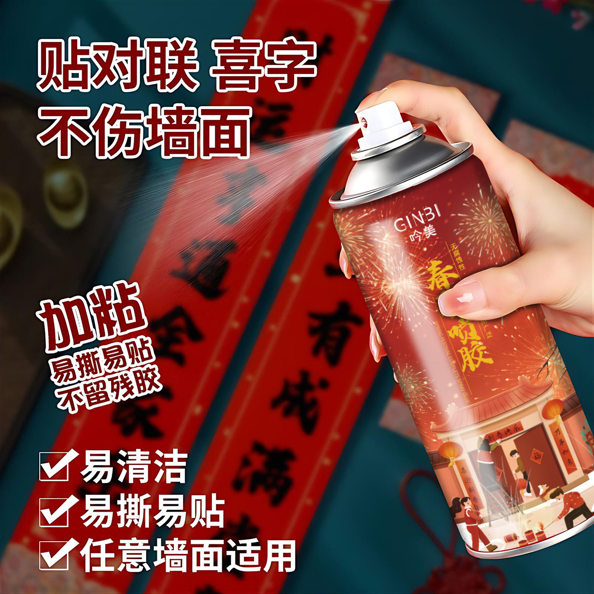 吟美春联胶喷雾260ml春联对联专业胶水强力无异味春节过年家用