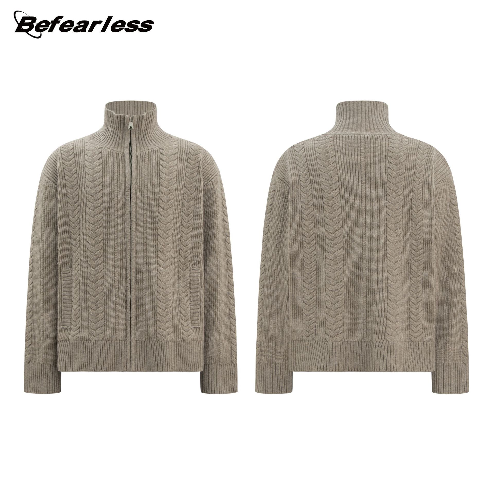美式复古重磅麦穗绞花立领针织衫男女潮牌休闲宽松开衫毛衣外套
