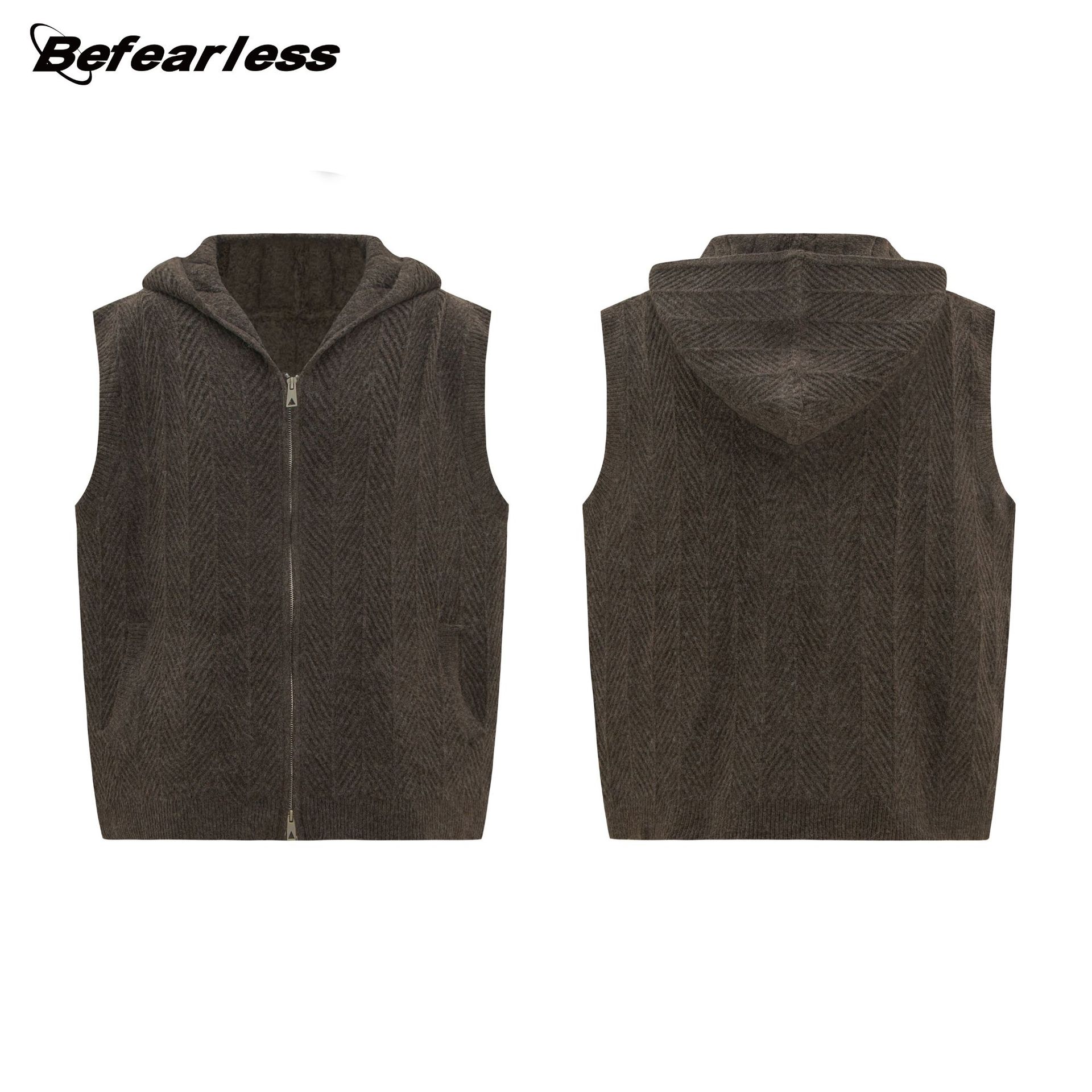 美式复古羊毛开衫连帽针织马甲背心男女潮牌cleanfit短宽休闲上衣