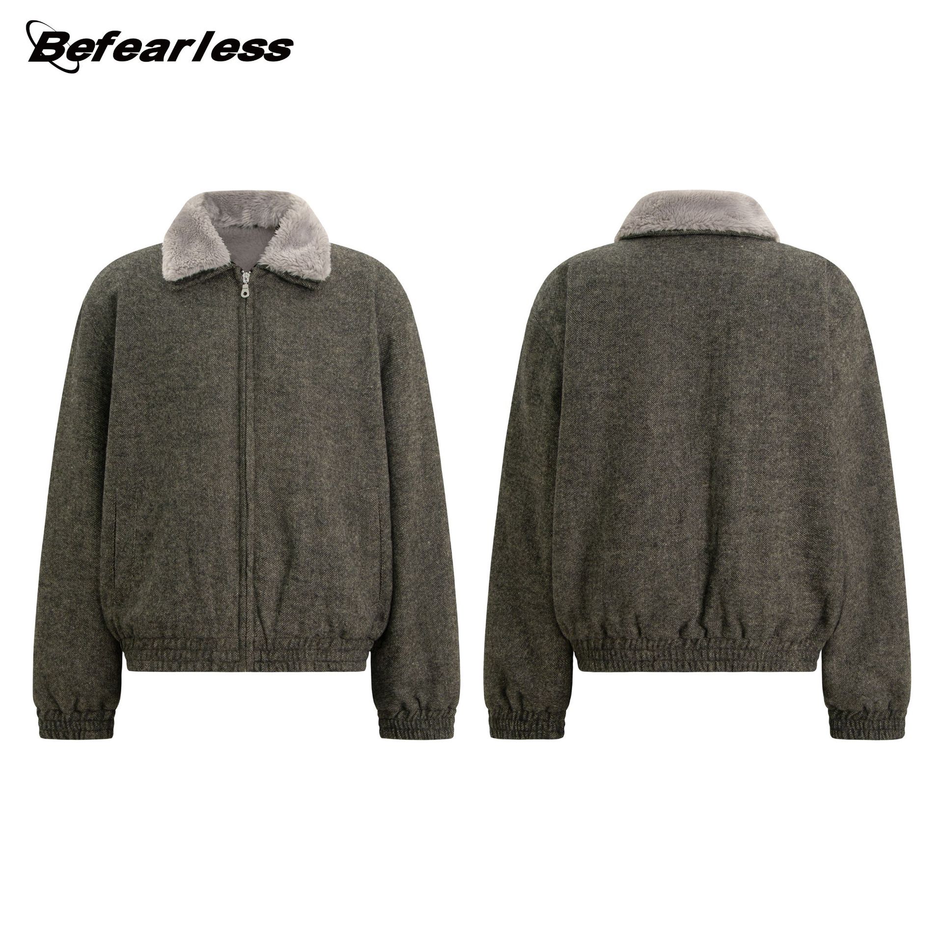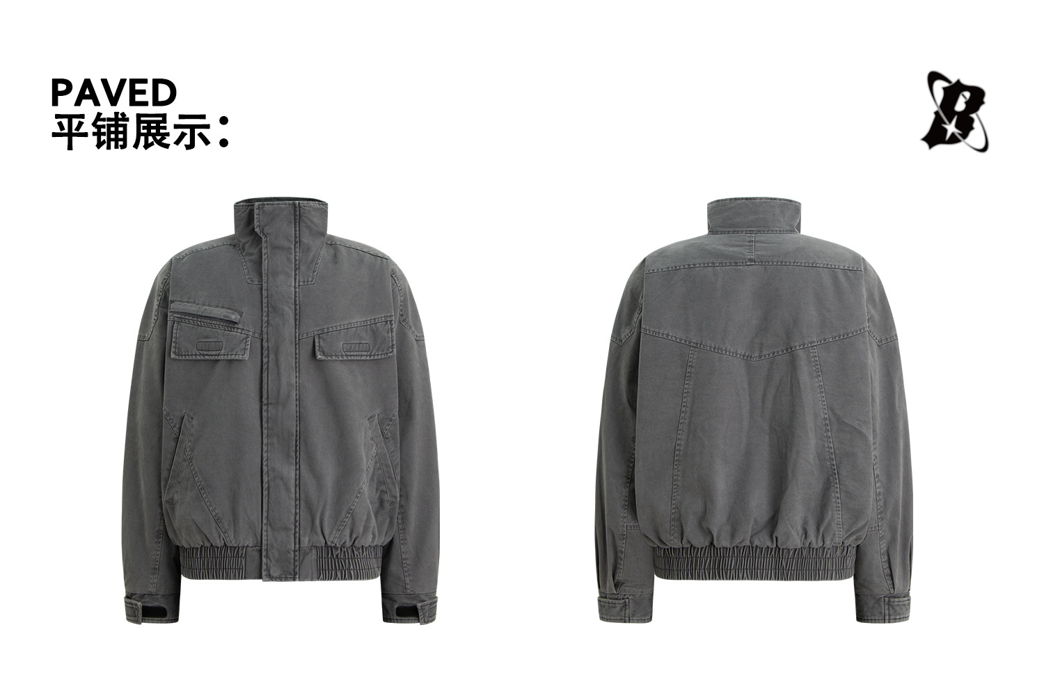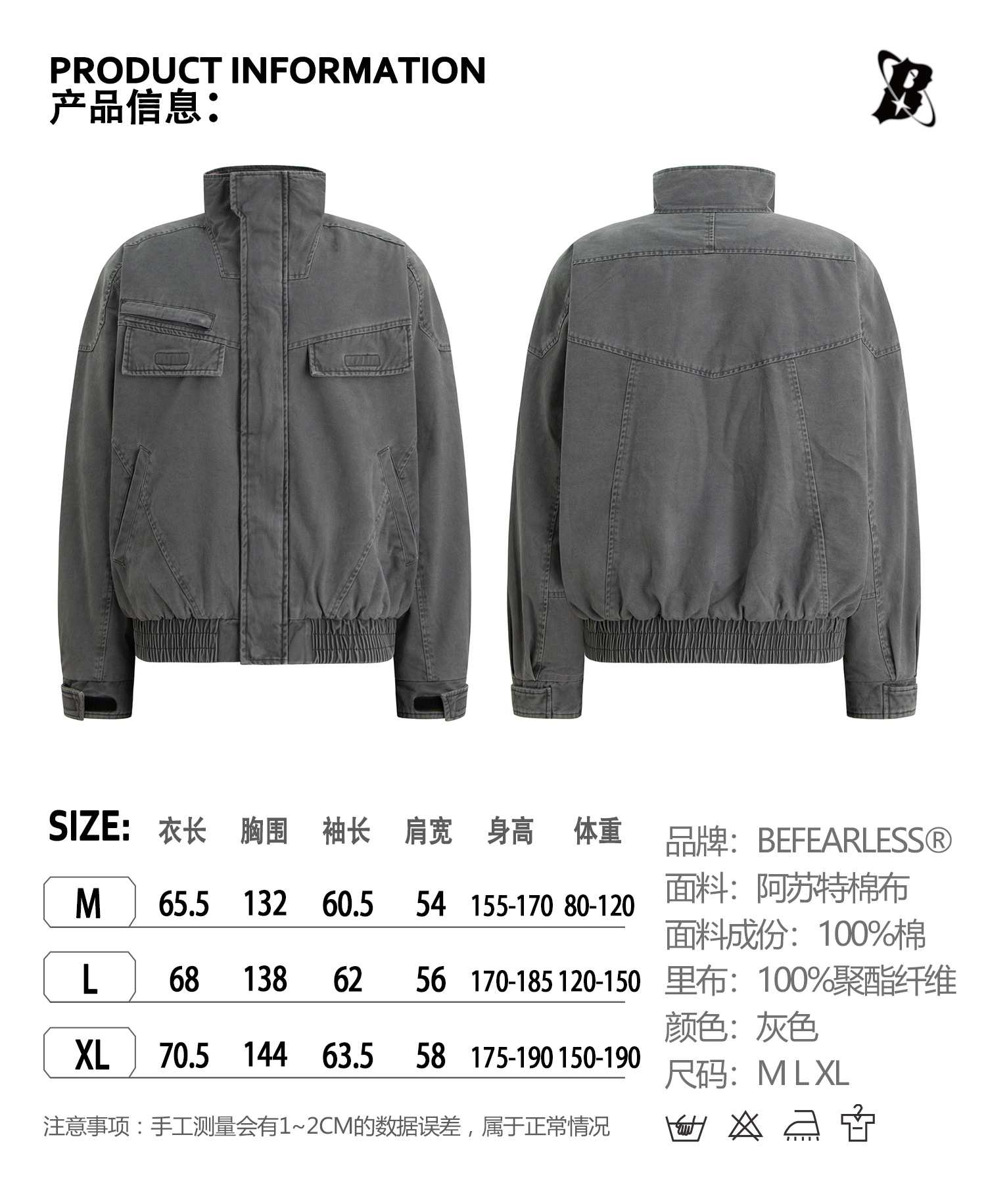 美式复古重工水洗做旧廓形立领工装夹克潮牌兔毛内里短宽棉服外套