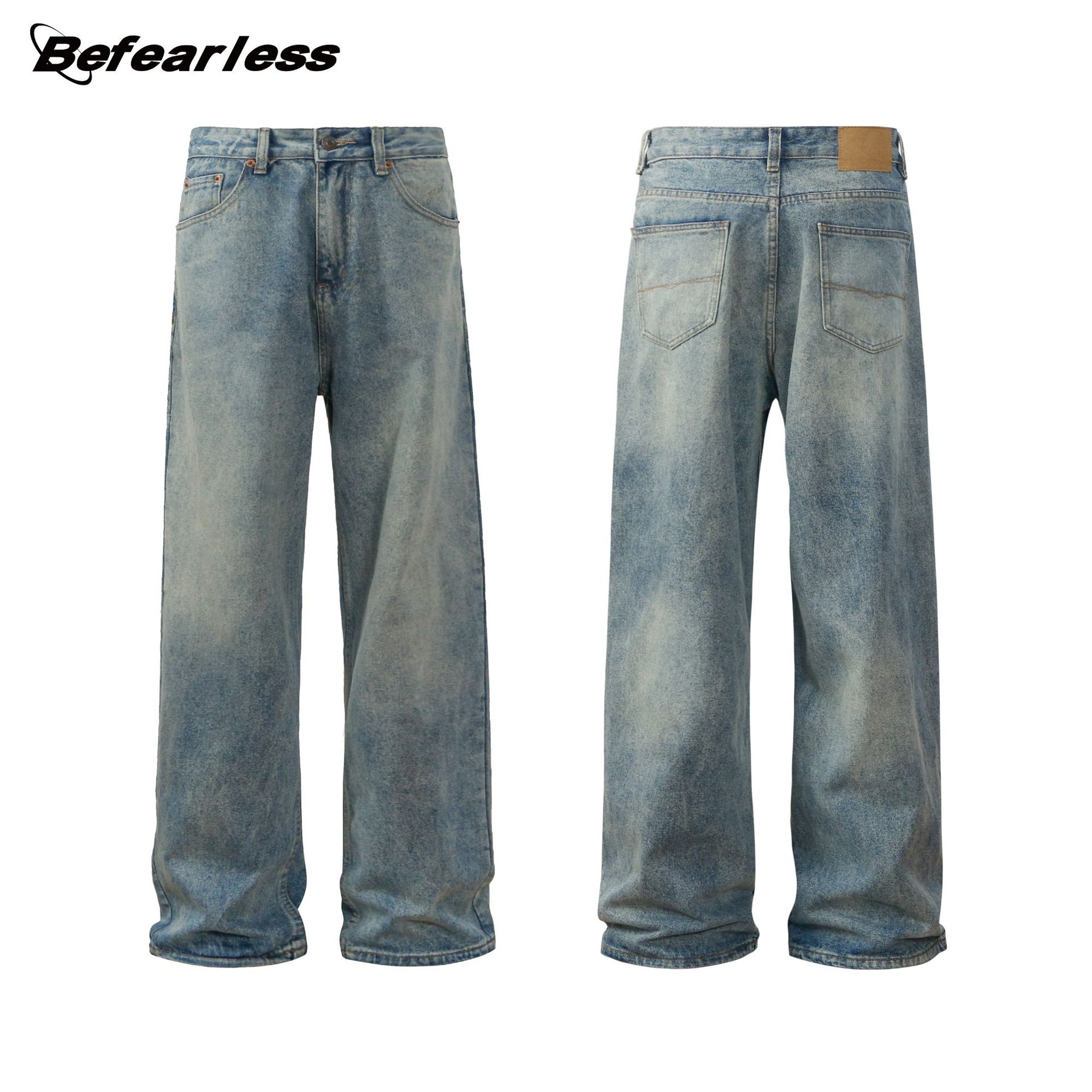 アメリカンレトロウォッシュ加工オールドシルエットシミタージーンズトレンディなブランドハイエンドボーイズルーズワイドレッグパンツ卸売