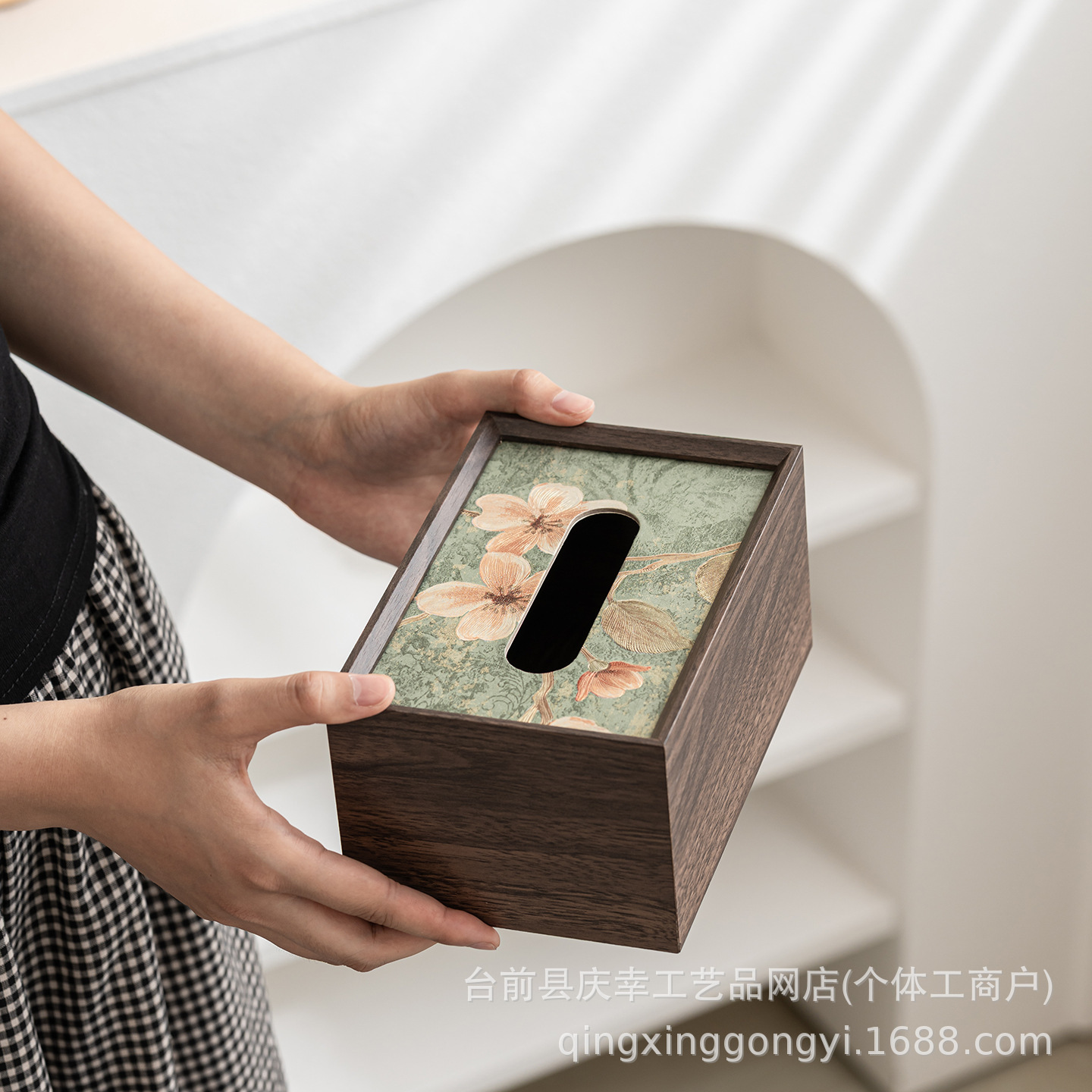 中式木质印花纸巾盒家用客厅茶几纸盒酒店桌面收纳盒餐厅抽纸盒