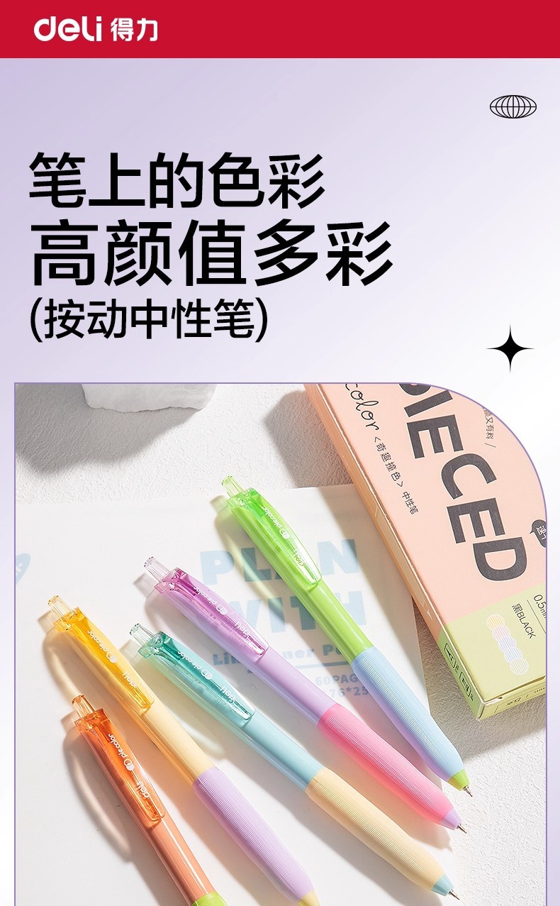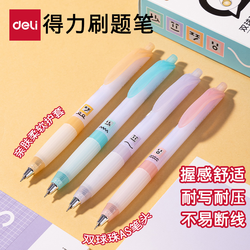 得力SA389按动中性笔刷题笔高颜值中性笔0.5mm黑笔学生文具批发