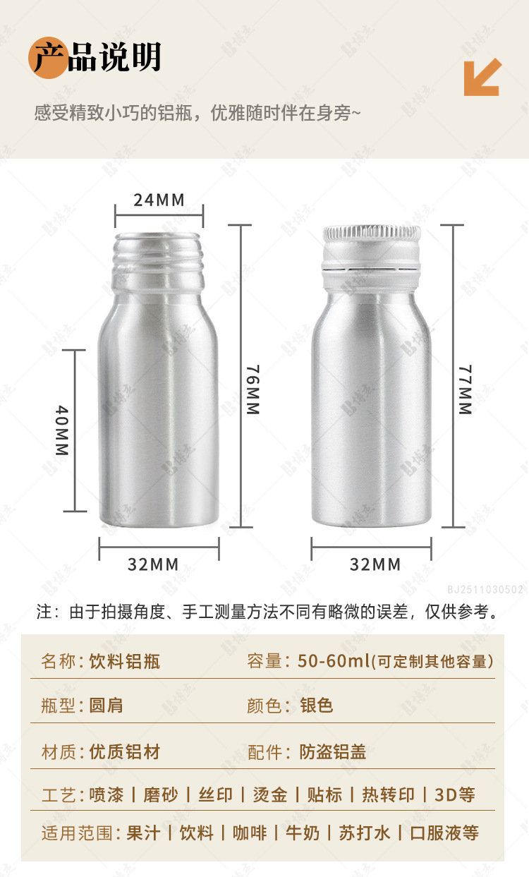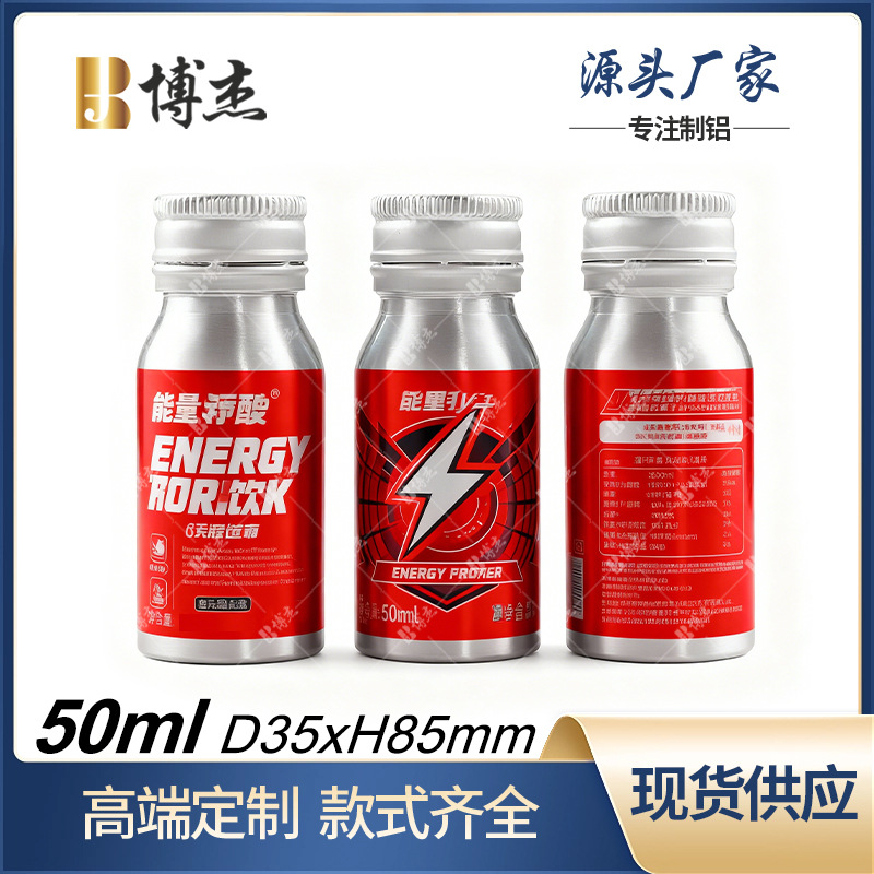 50ML口服液铝瓶 功能饮料铝制液体分装瓶果汁包装铝空瓶现货加印