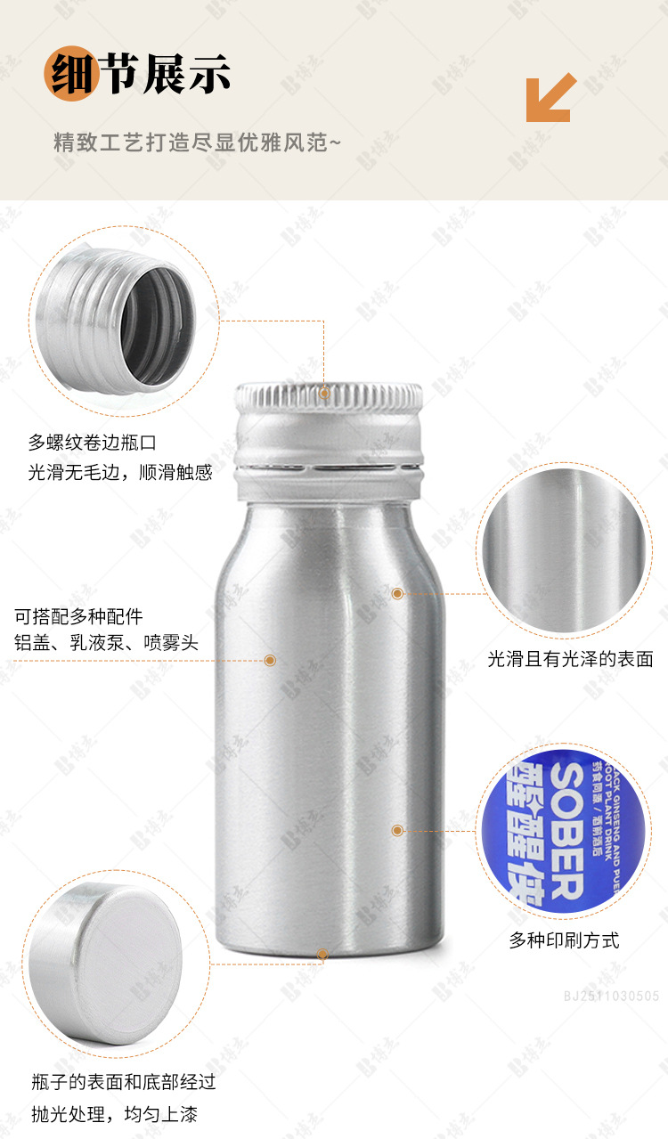 30ml-250ml饮料铝瓶 食品级果汁咖啡液体分装瓶铝制口服液瓶包装