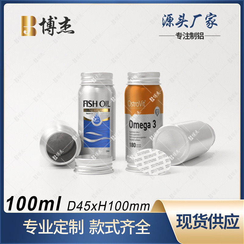 100 ミリリットル食品と医薬品アルミ缶 45*100 ミリメートルビタミンキャンディー魚油ソフトカプセル包装ヘルスケア製品アルミボトル