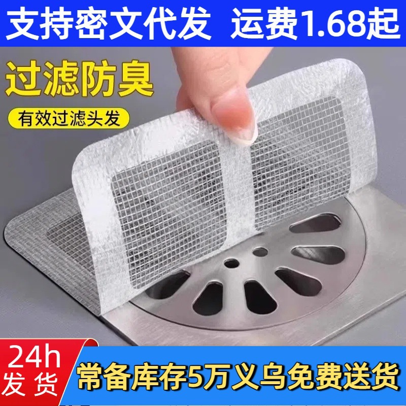地漏贴一次性浴室毛发纱网贴卫生间头发防堵厨房防臭虫地漏过滤网