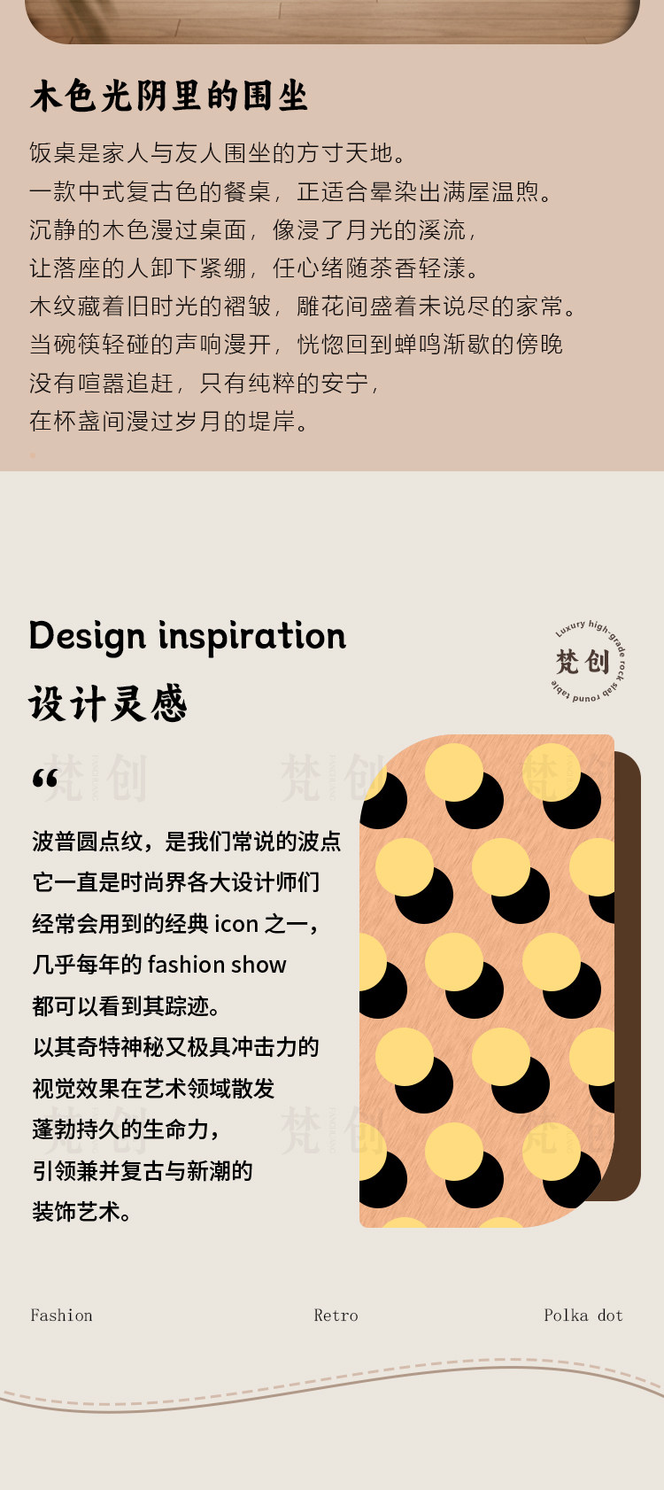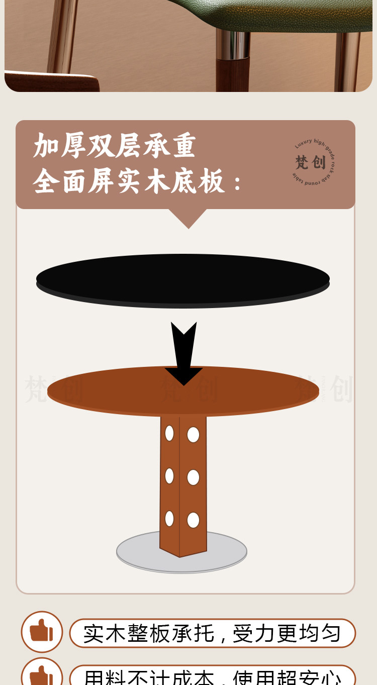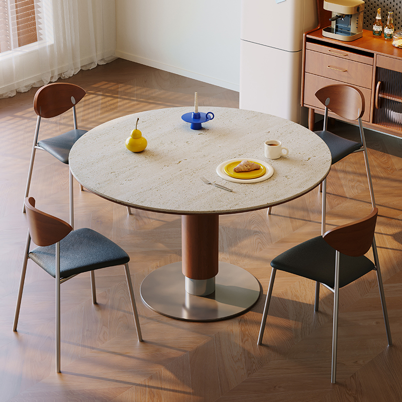 木小咖简约实木餐桌维亚圆桌家用小户型中古洞石岩板桌椅组合