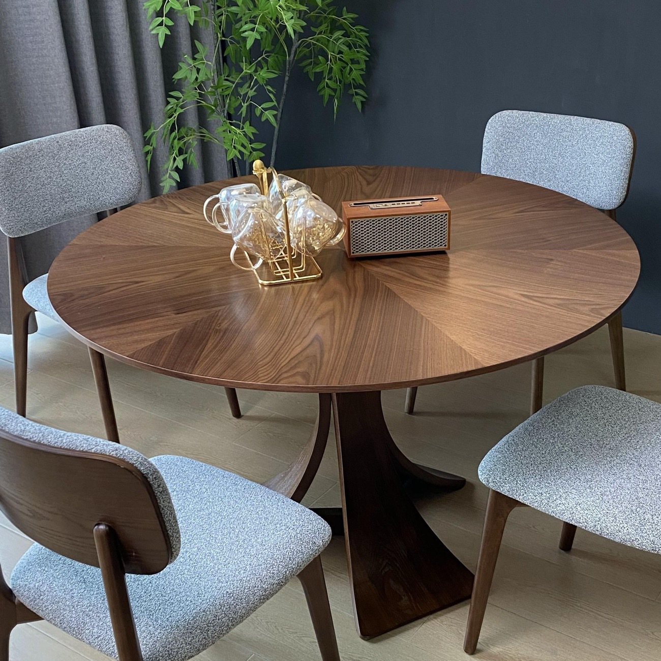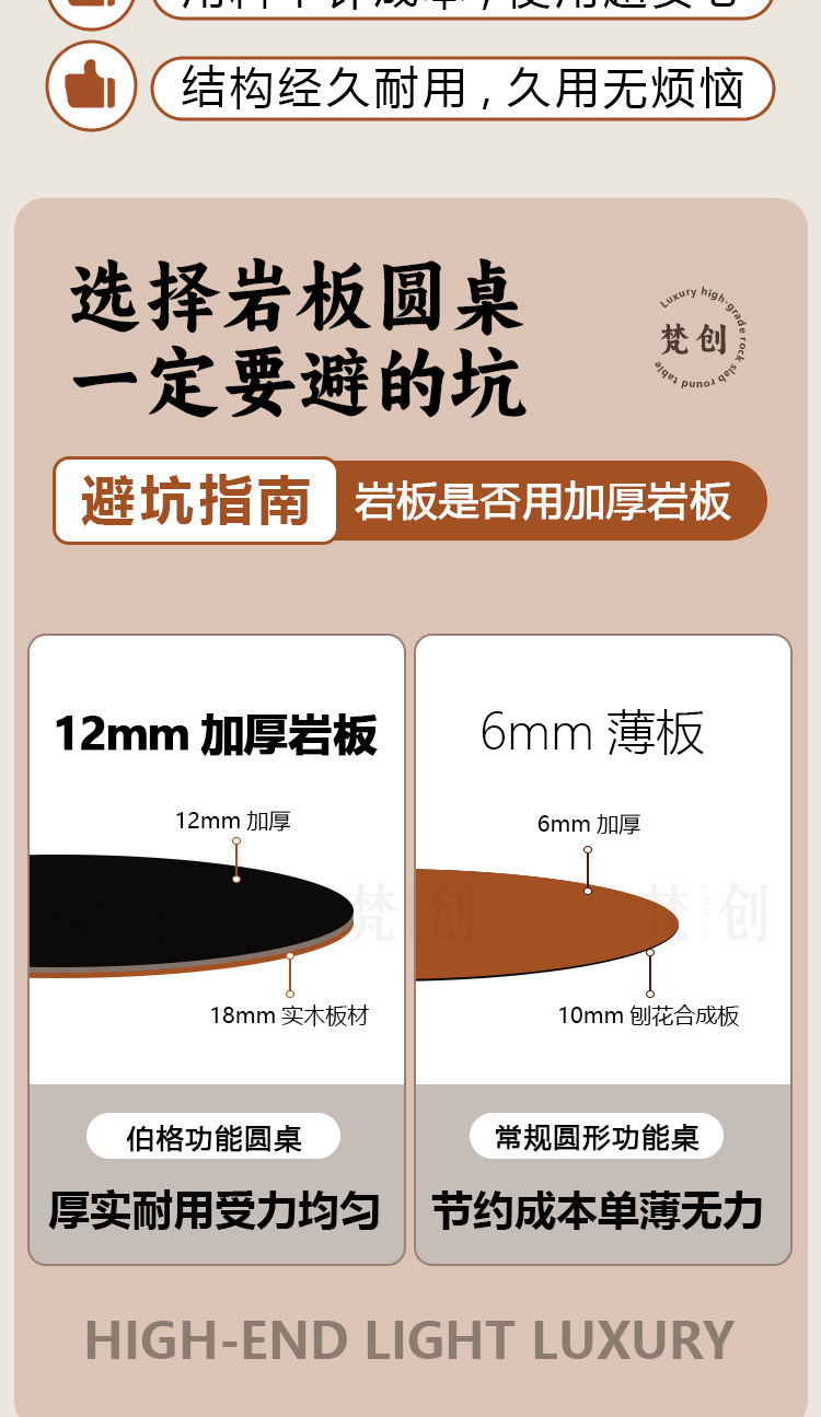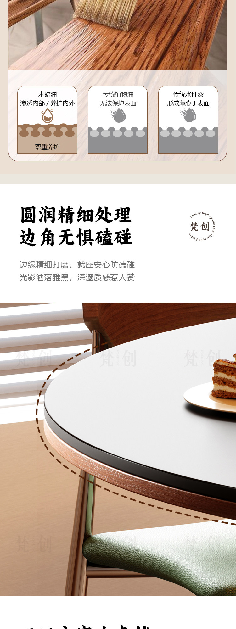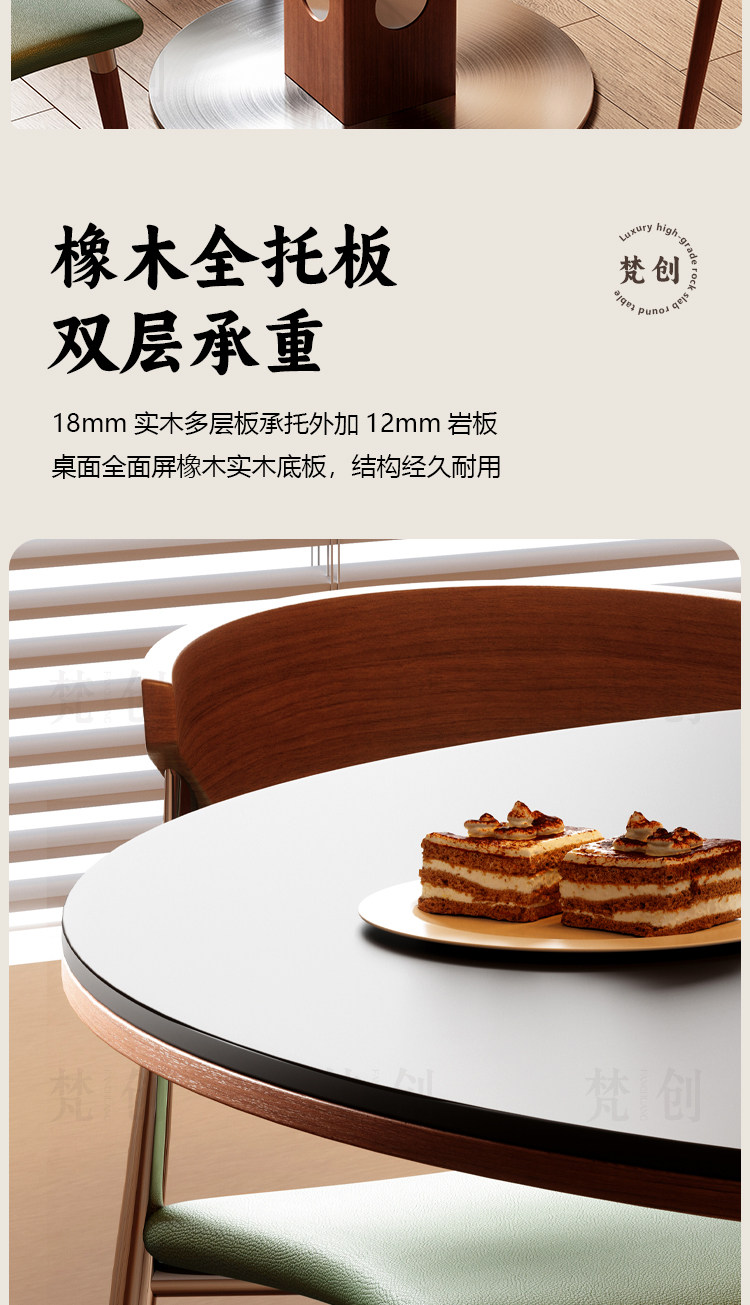 复古风实木岩板餐桌家用小户型纯白圆形胡桃色简约中古风窈窕圆桌