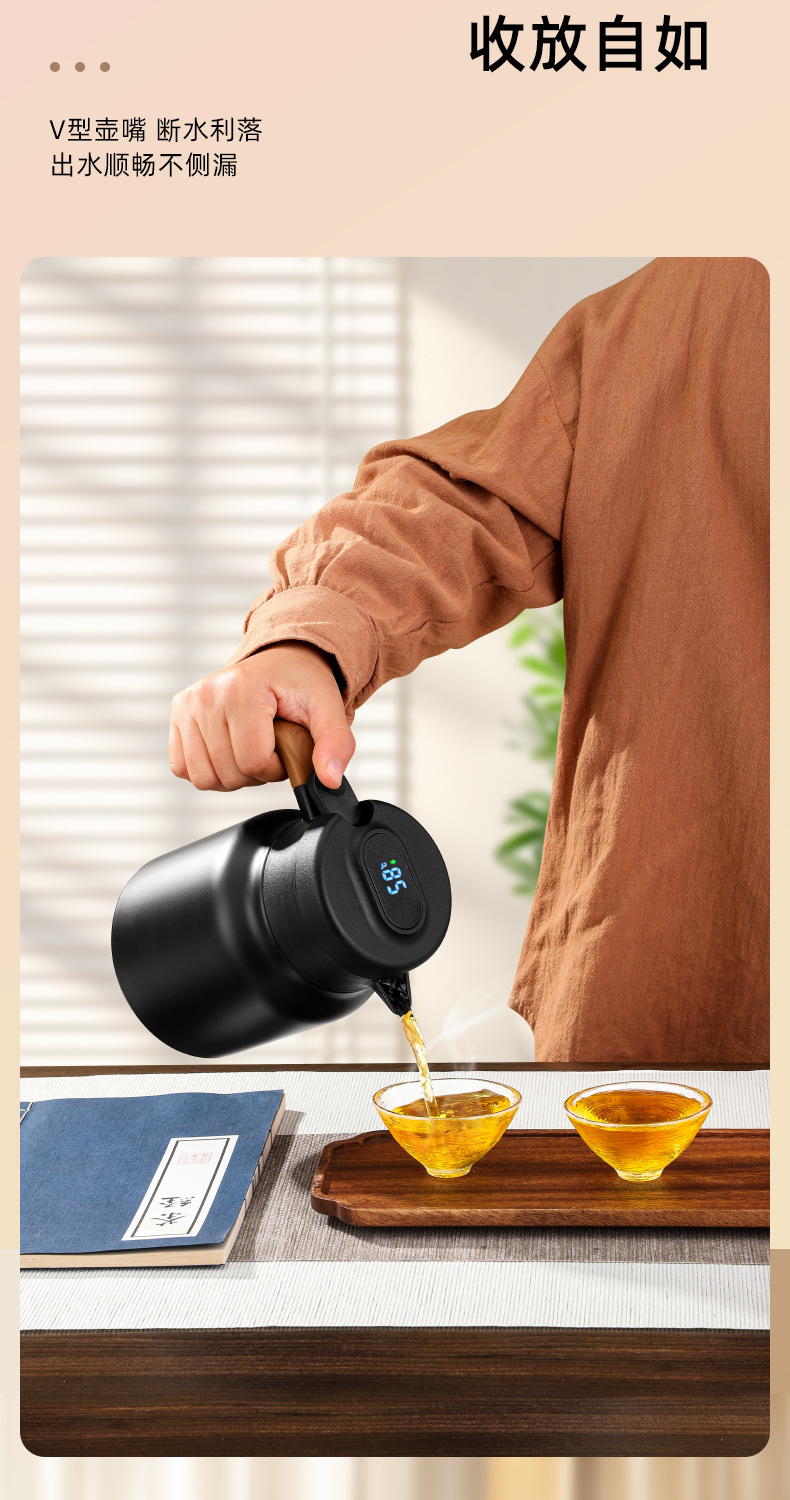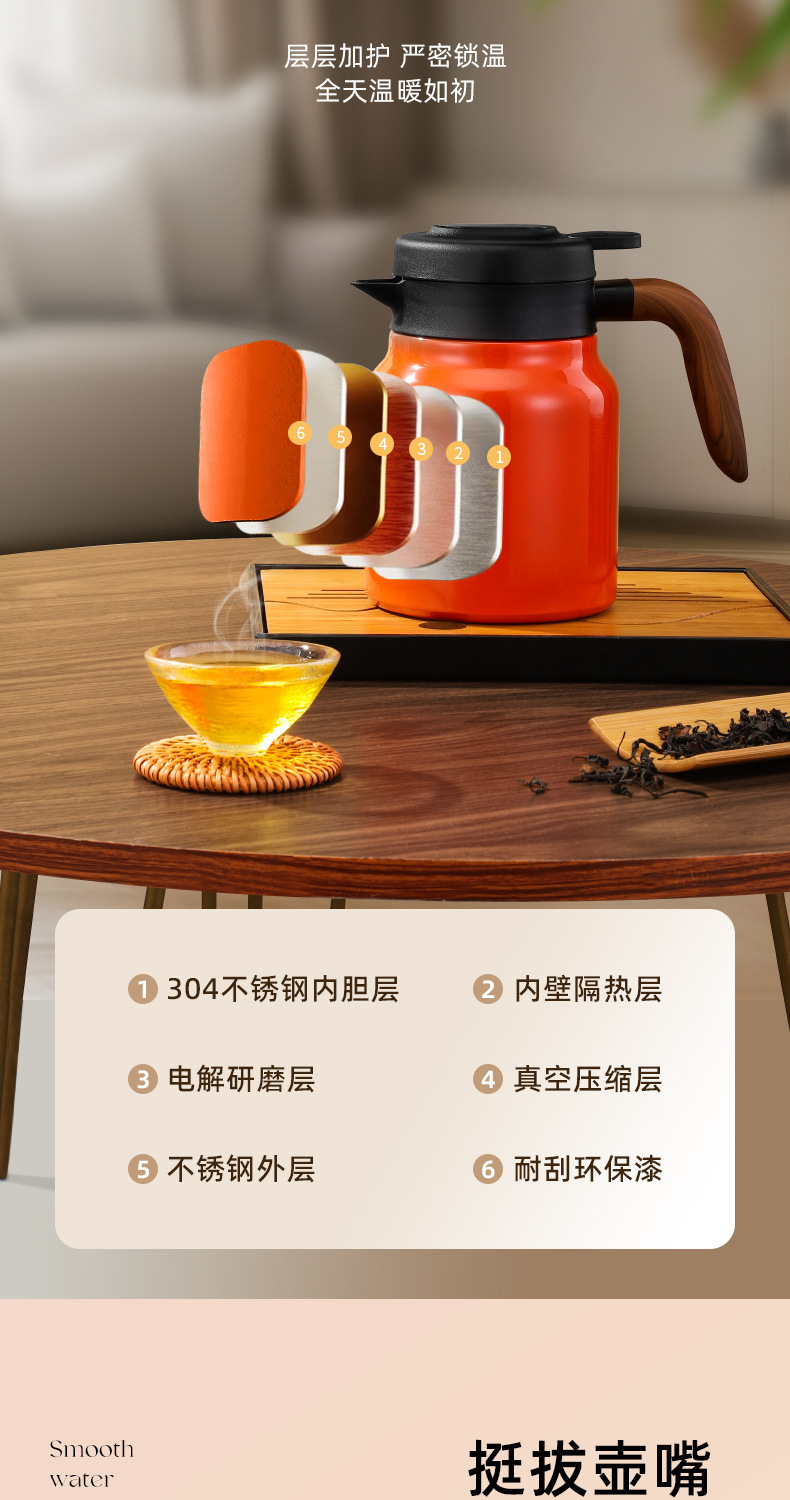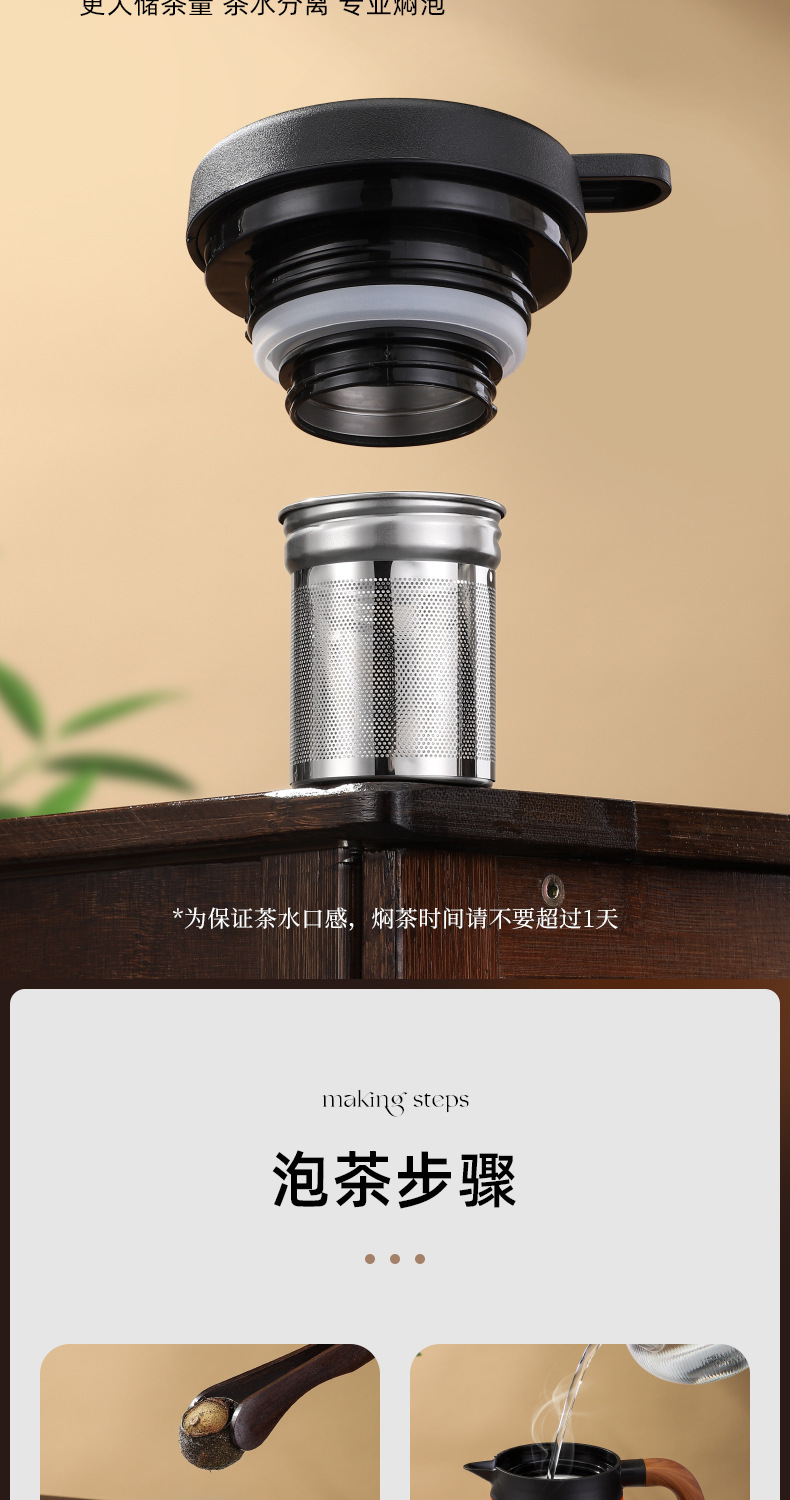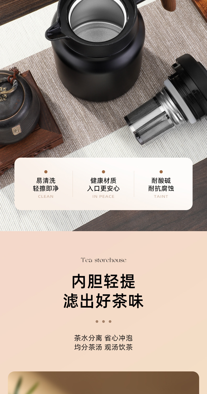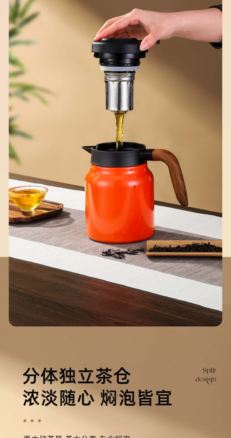 家用木手柄焖茶壶不锈钢茶水分离大容量老白茶闷泡茶壶保温办公