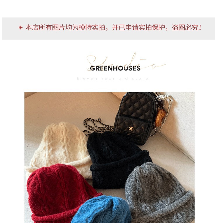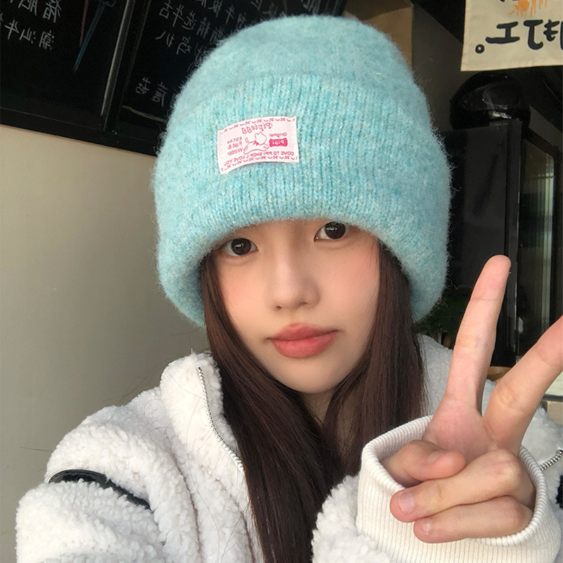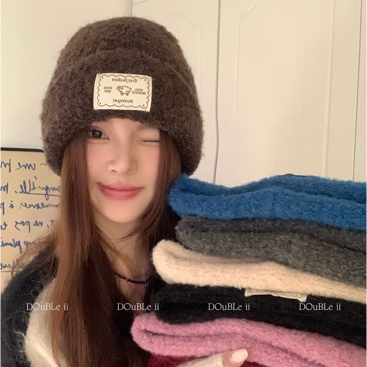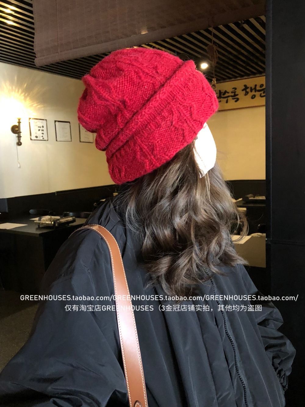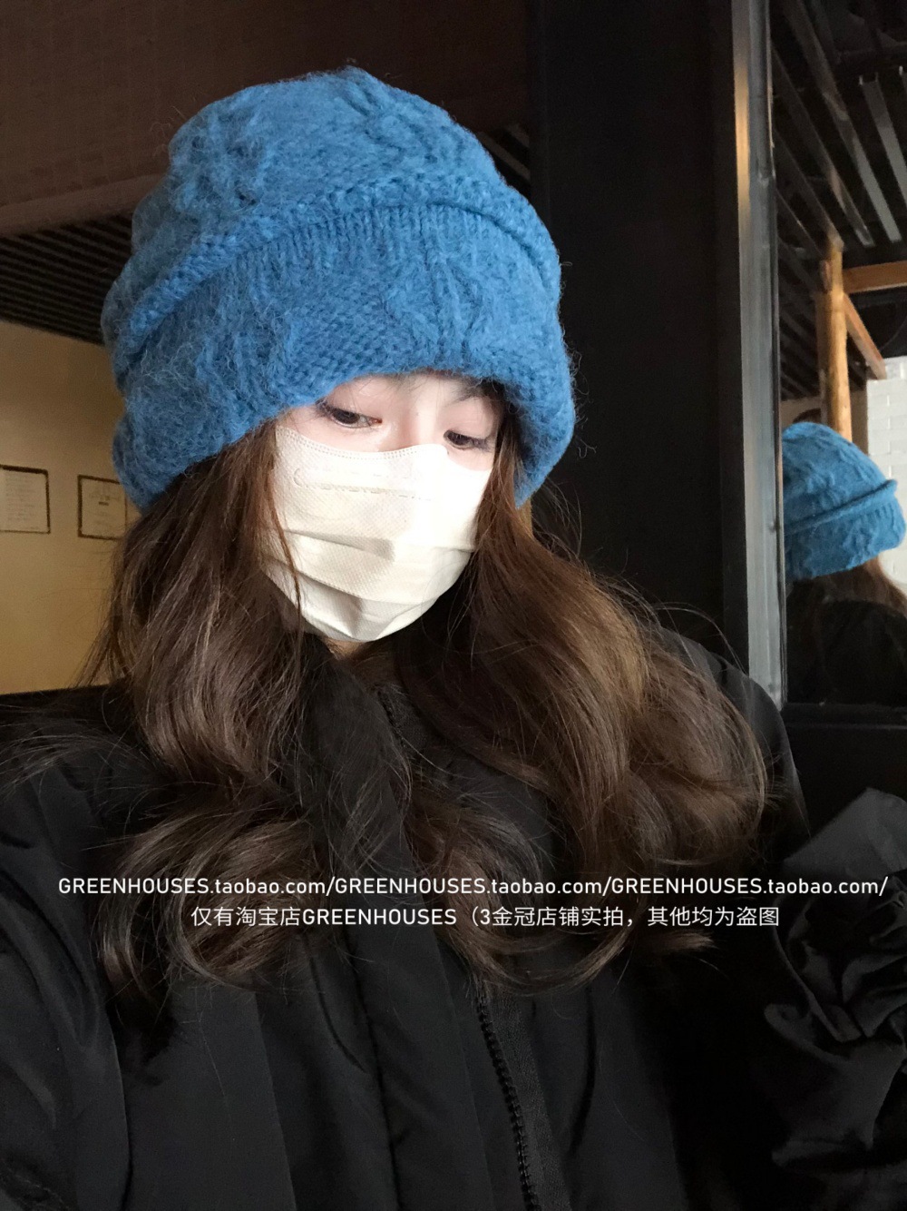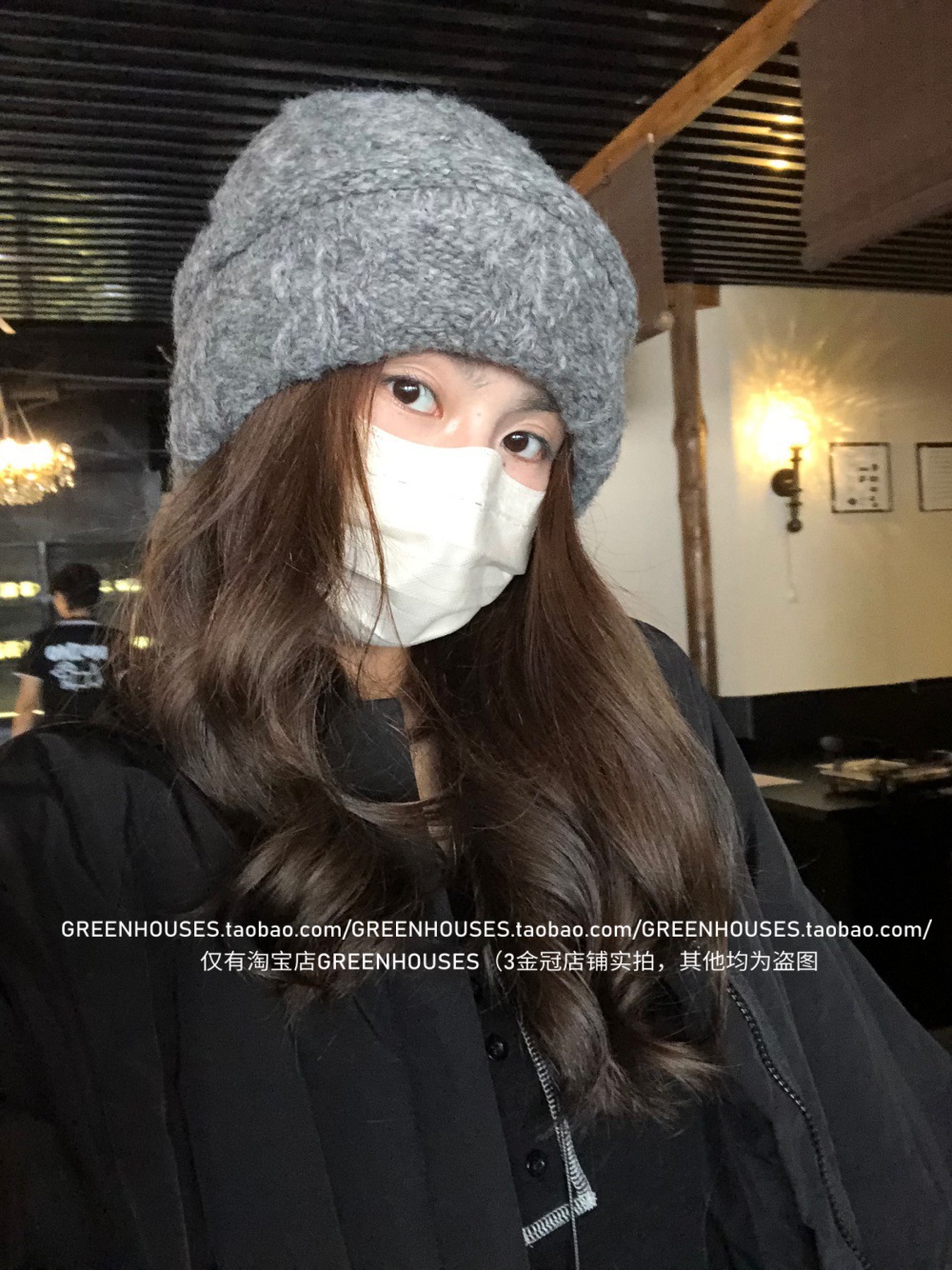 韩系休闲针织套头帽秋冬新款加厚毛线帽子女显脸小护耳保暖堆堆帽
