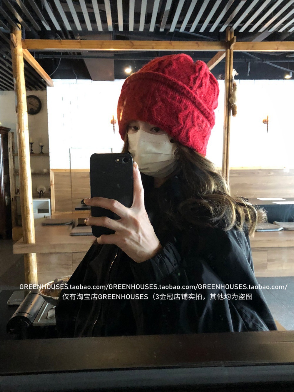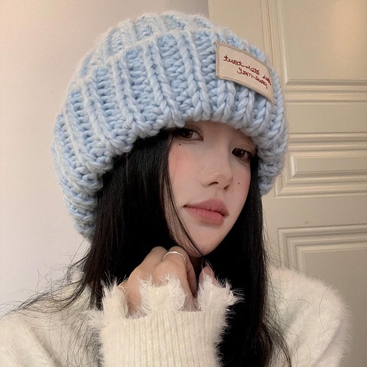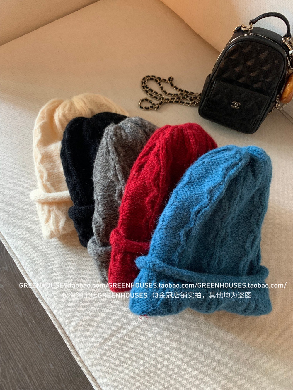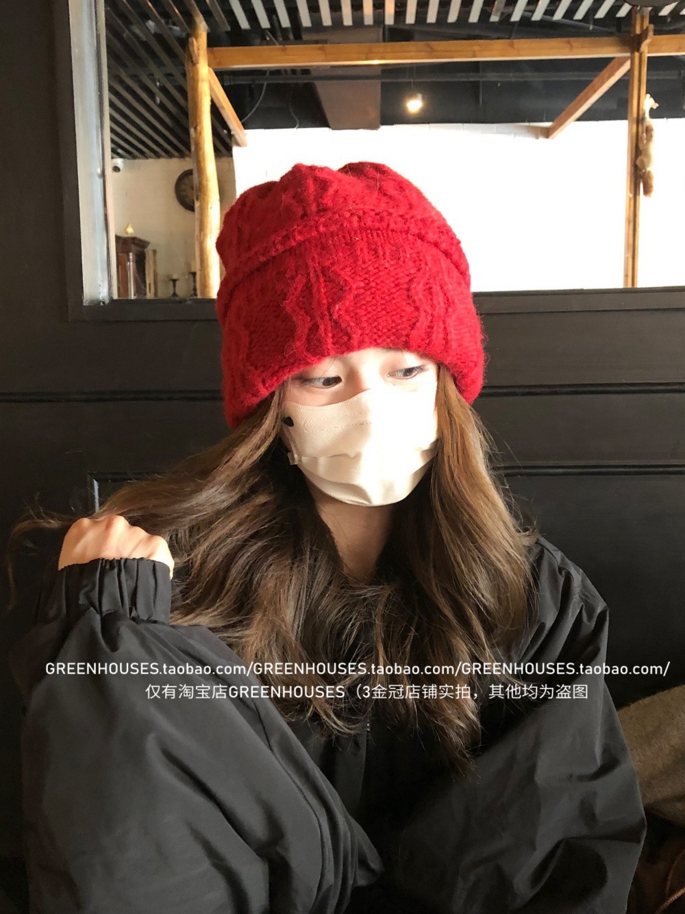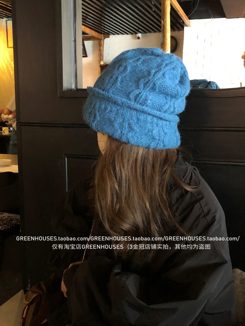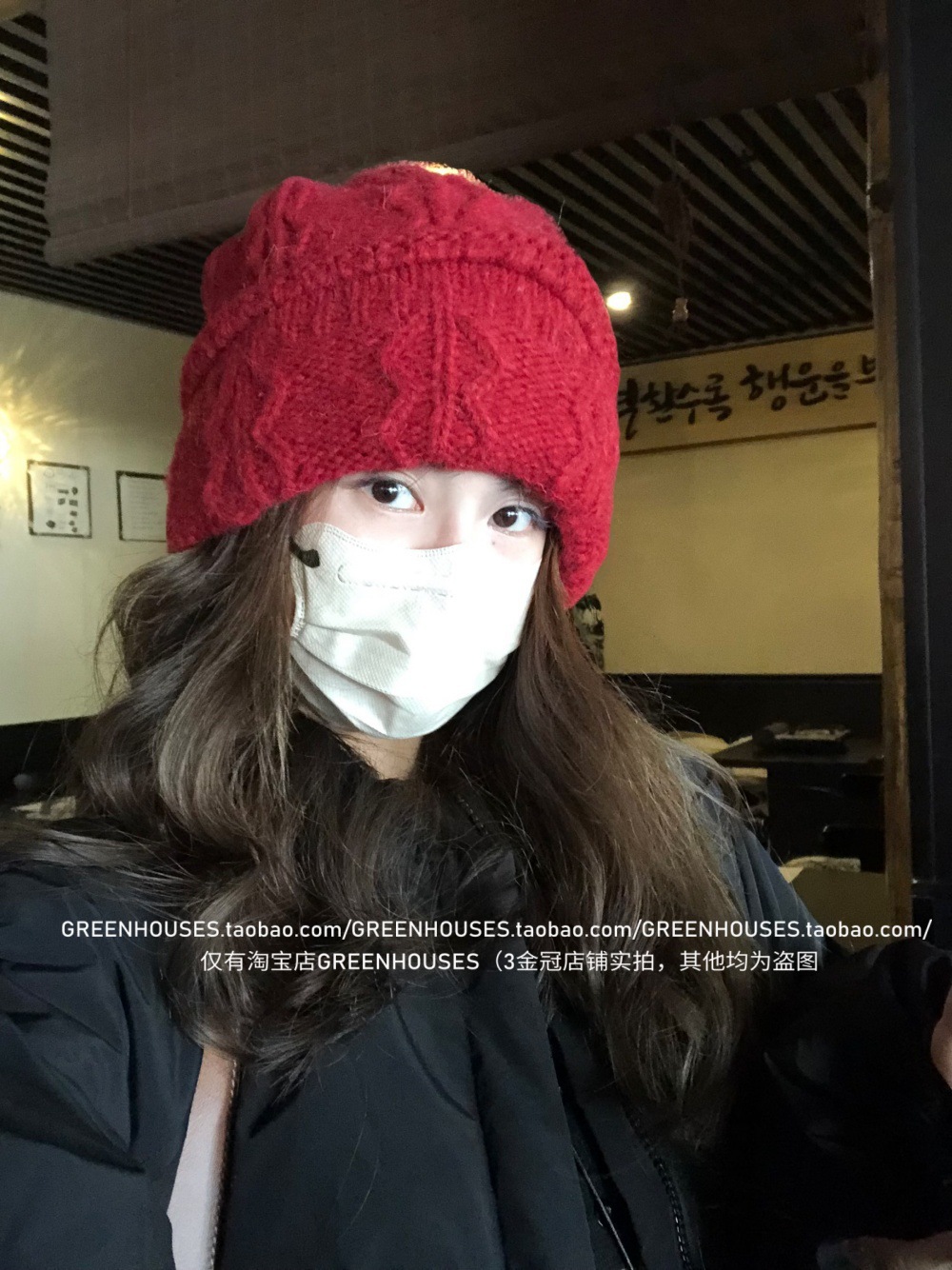 韩系休闲针织套头帽秋冬新款加厚毛线帽子女显脸小护耳保暖堆堆帽