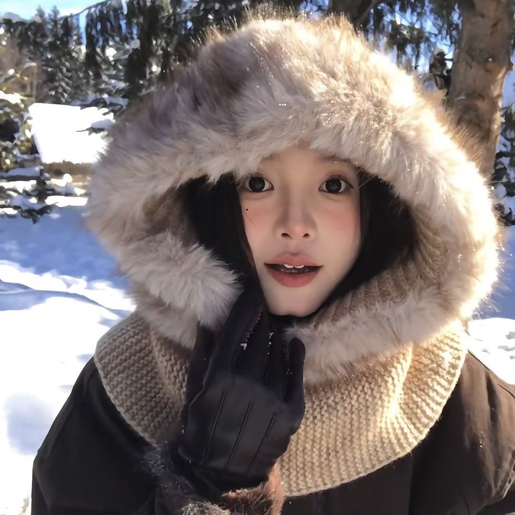 韩国巴拉克拉法帽大头围仿貂毛连帽一体针织帽女秋冬护耳套头帽子
