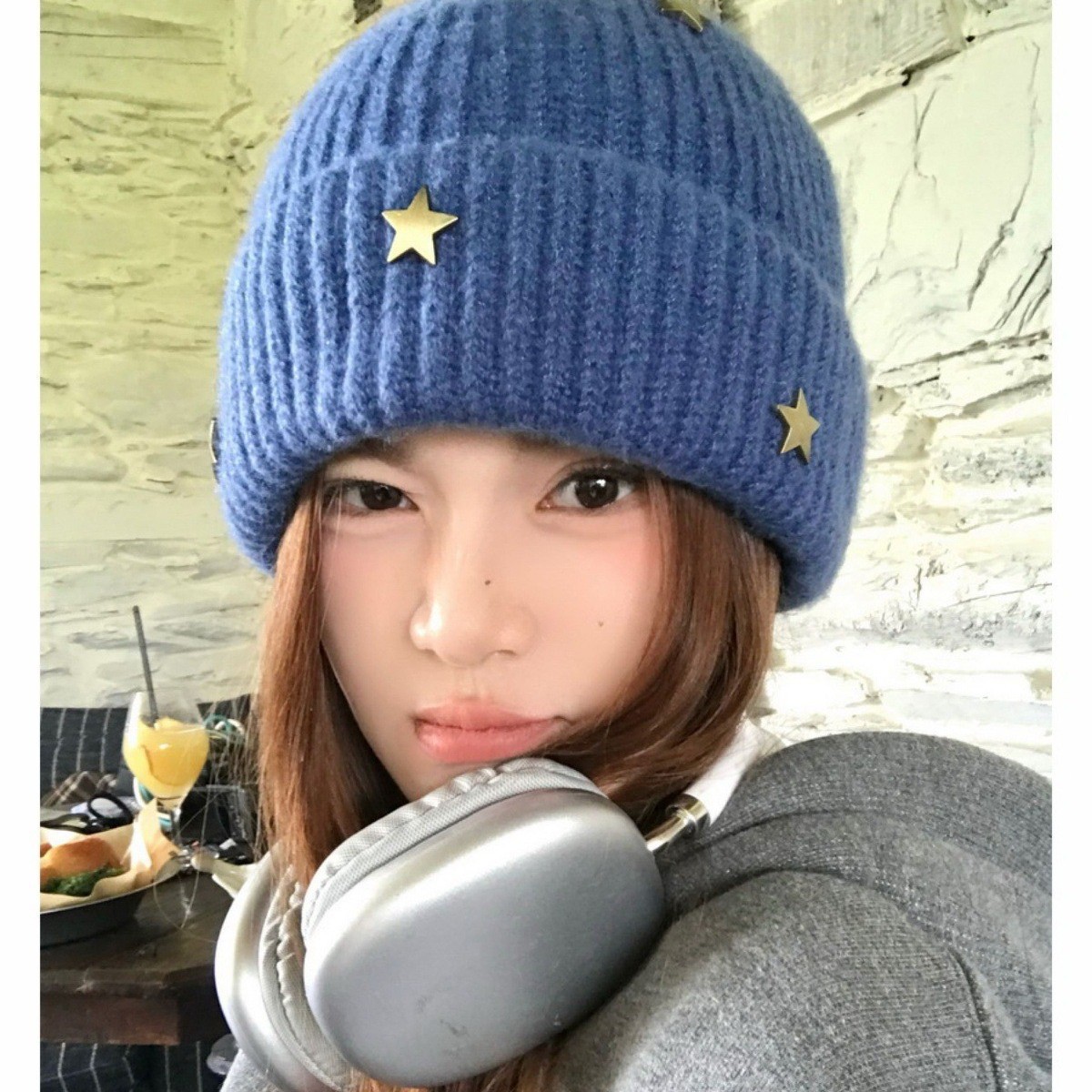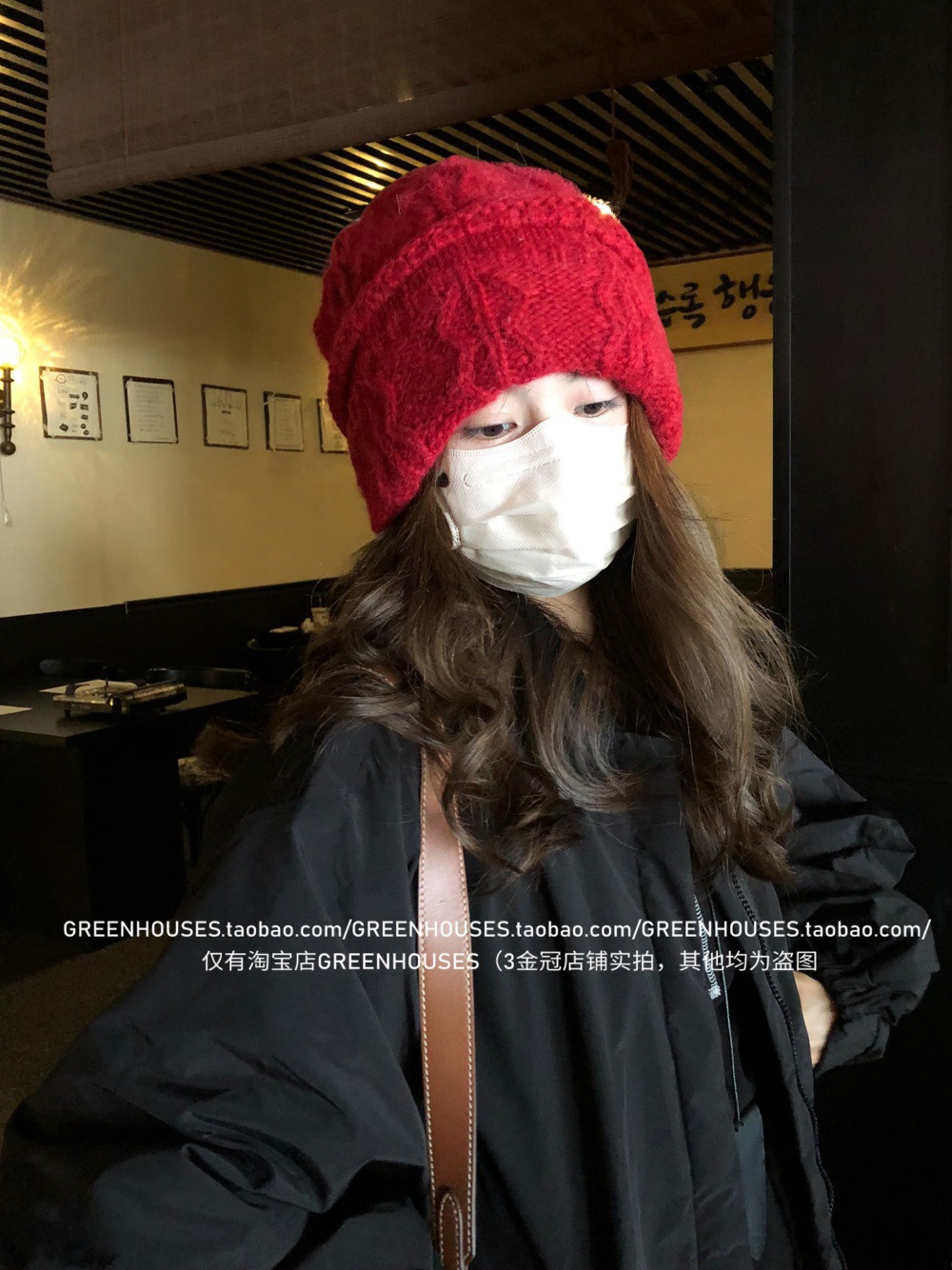 2025新款韩版立体星星针织毛线帽女秋冬季保暖堆堆包头帽护耳冷帽