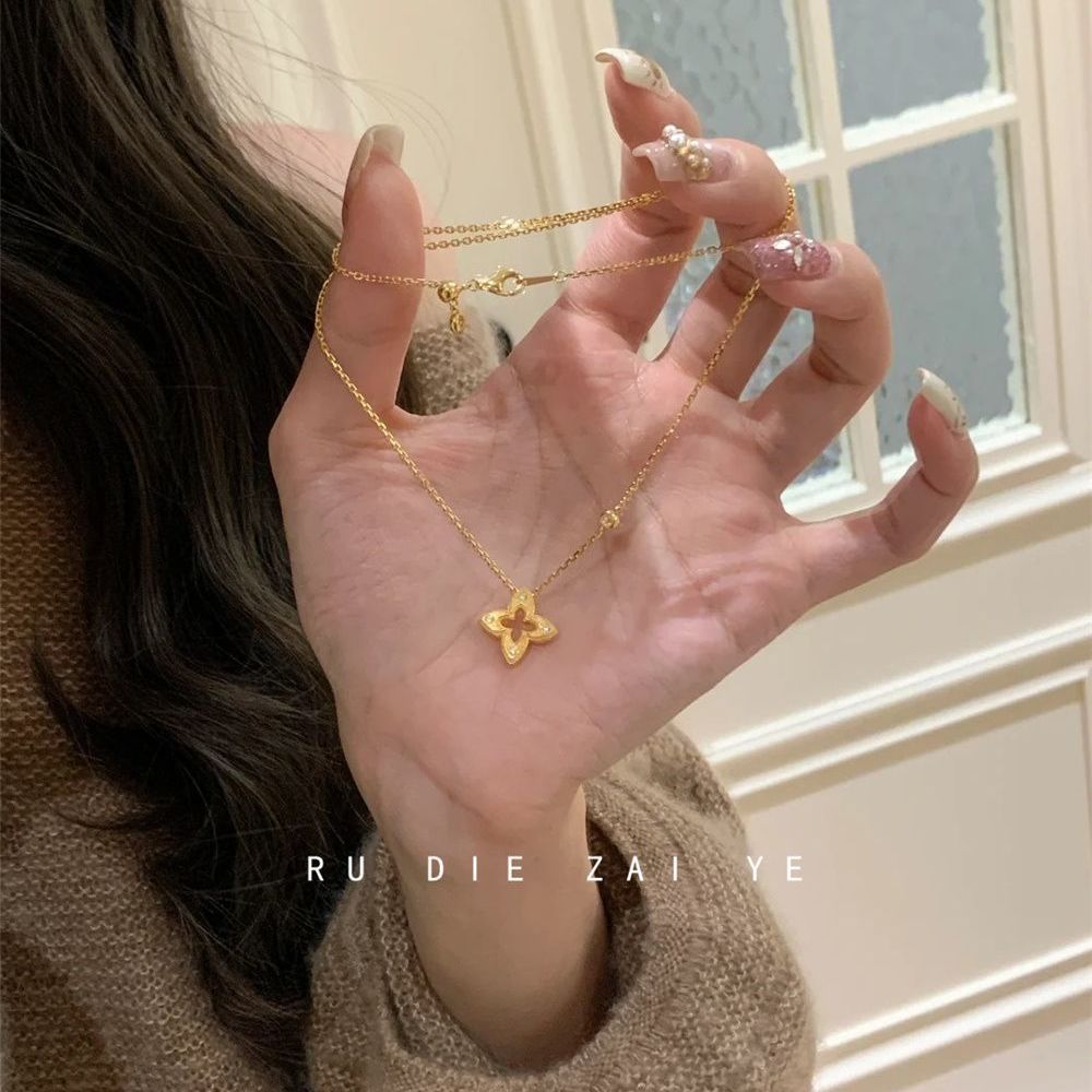 「钛钢不掉色」金色拉丝四叶草项链女轻奢小众ins高级吊坠锁骨链