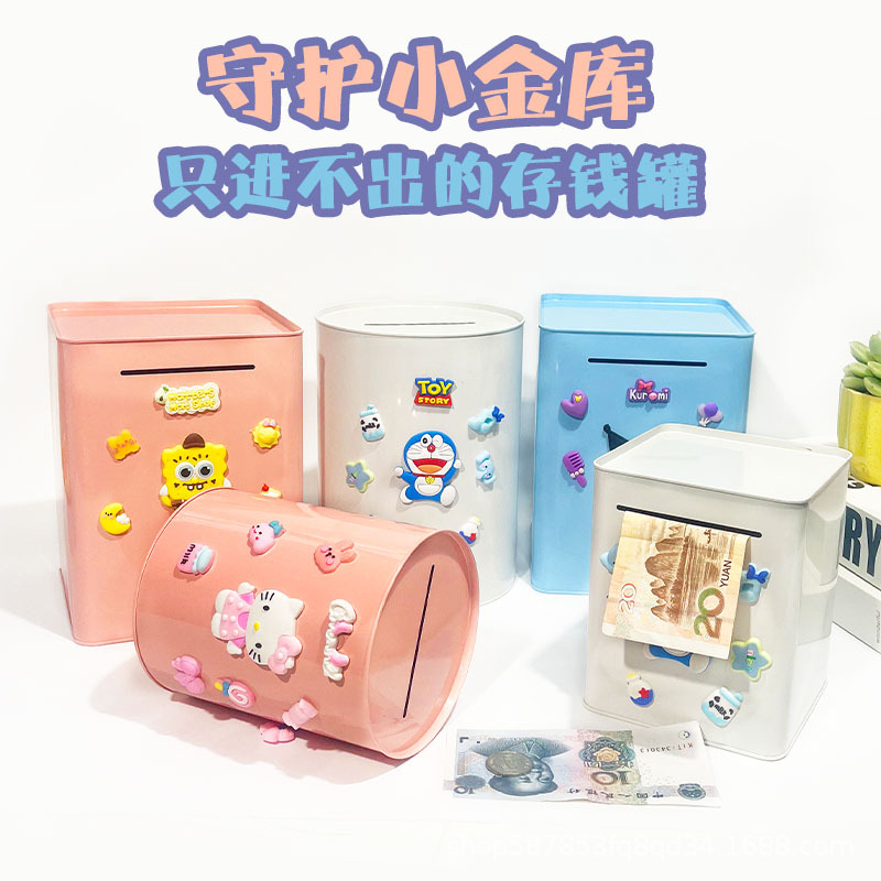 金属存钱罐只进不出储蓄罐儿童高颜值存钱箱男孩女孩彩色储钱罐