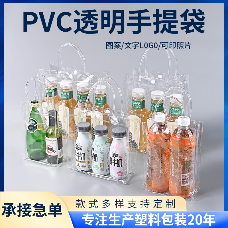 pvc手提袋定制婚庆喜糖伴手礼袋透明塑料包装按扣手提袋批发logo