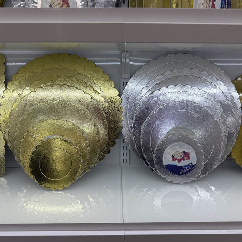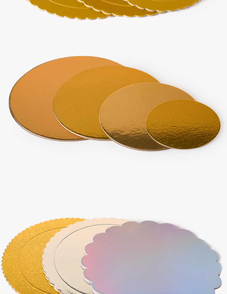 6/8/10/ 12inch ゴールデン厚みのあるケーキベースグレーカラーラウンドハード紙パッドレースムースベーキングトレイ