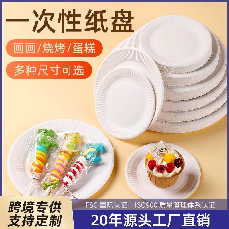 使い捨て白紙皿、食事用皿、誕生日ケーキ皿、紙皿、幼稚園の手作り絵画用白紙皿、ベーキング用