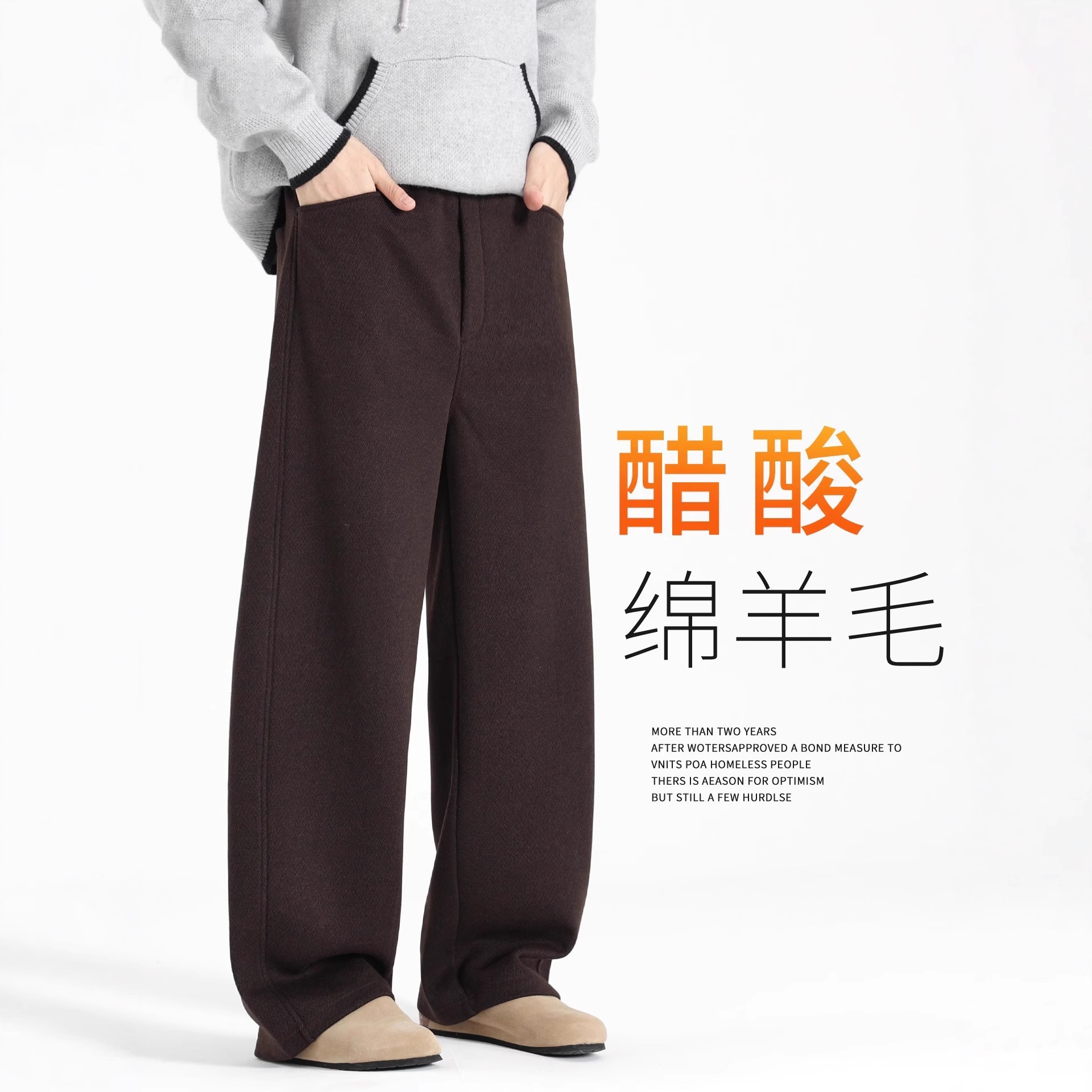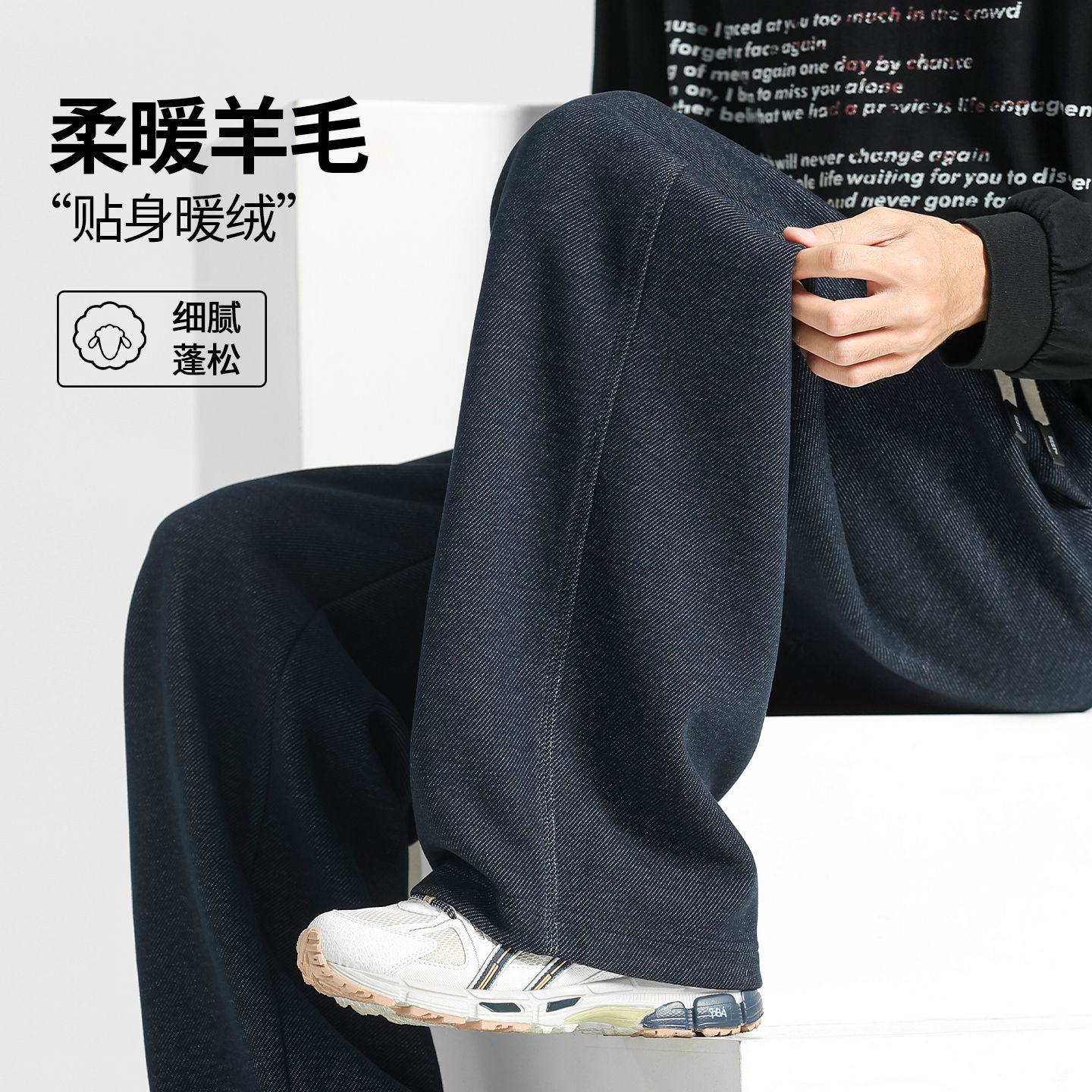 羊毛直筒裤子男款春秋垂感宽松阔腿卫裤加绒休闲长裤男士运动裤