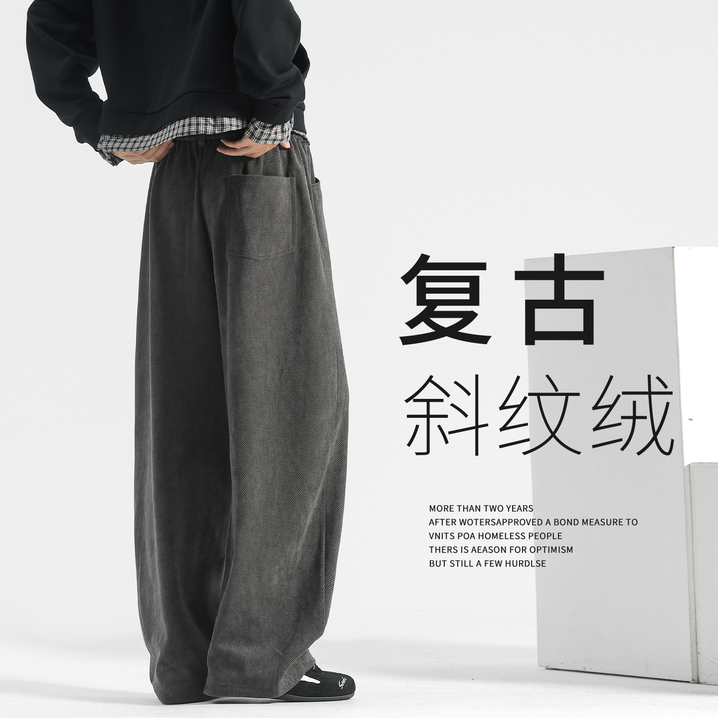 裤子男款春秋灯芯绒重磅弯刀裤宽松卫裤阔腿卫裤直筒裤男士休闲裤