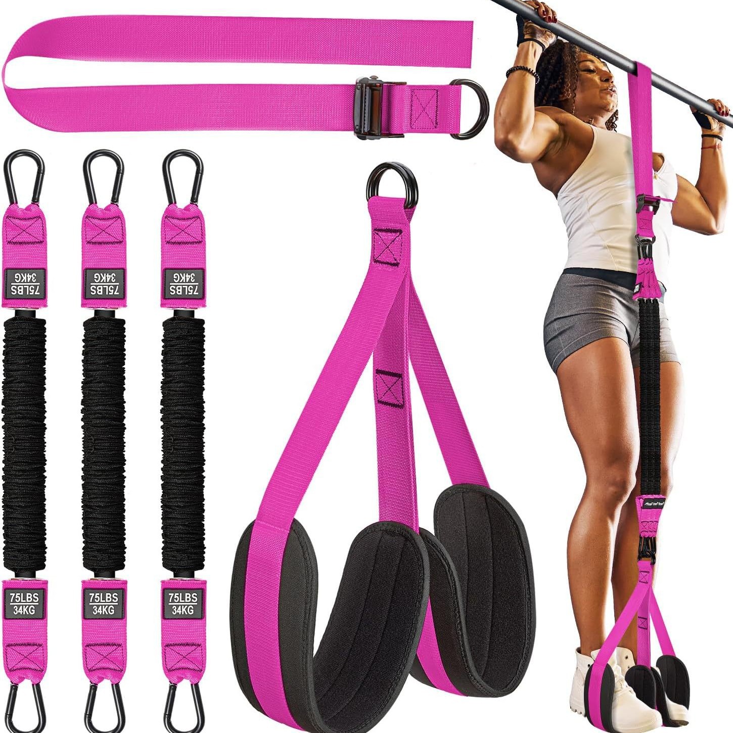懸垂バー、高耐久抵抗ロープ、重量調整可能な膝サポート、筋力トレーニング、特許取得済みの懸垂補助ベルト
