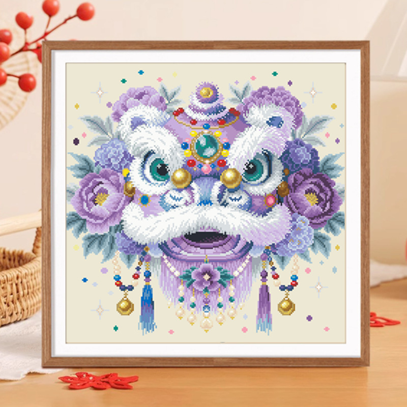 十字绣厂家抖音快手小红书一件代发2025新款线绣客厅刺绣喜狮纳福