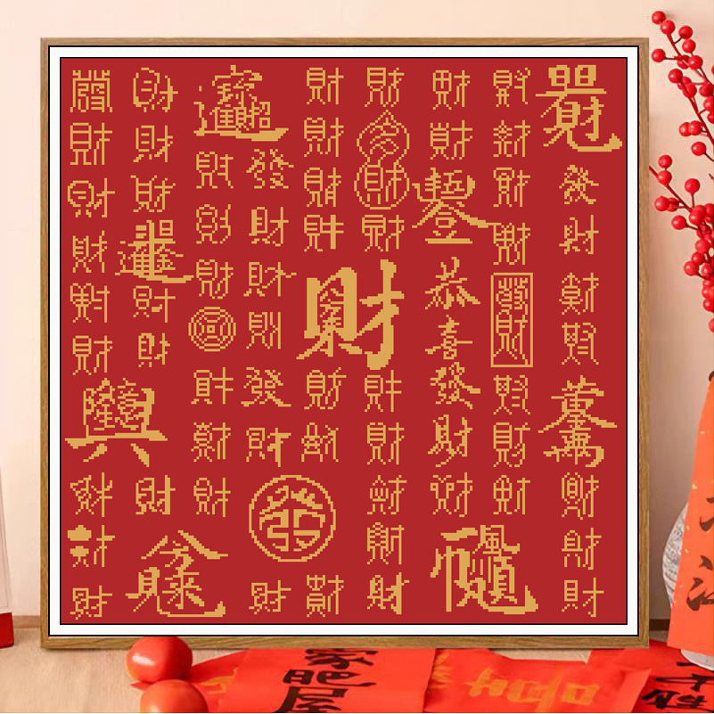 十字绣厂家抖音快手小红书一件代发2025新款线绣客厅刺绣恭喜发财