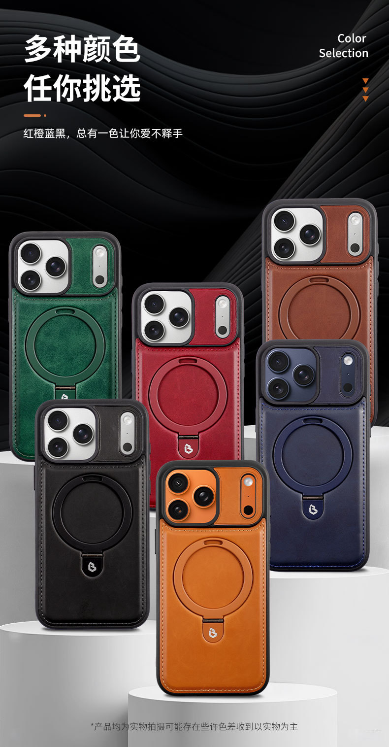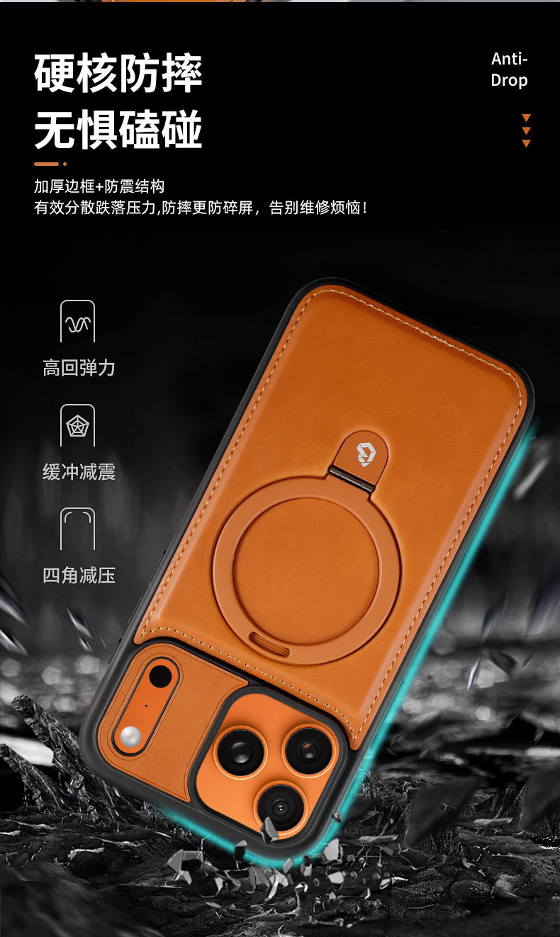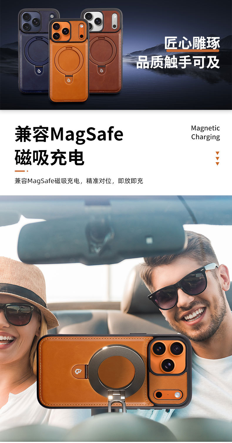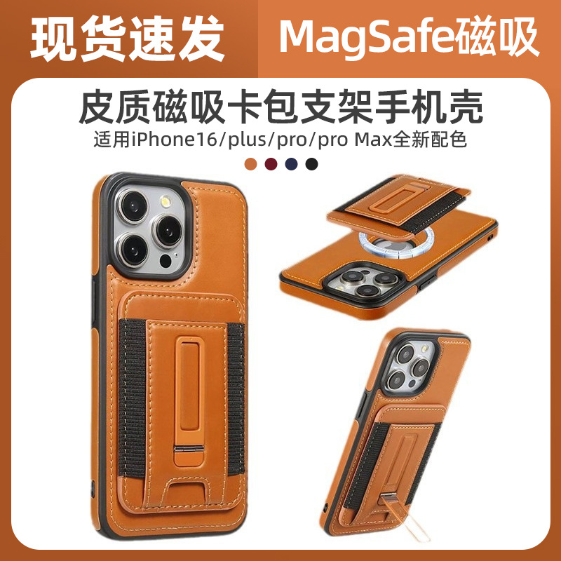 适用iPhone17ProMax磁吸支架手机壳高档商务皮套苹果17防摔保护套