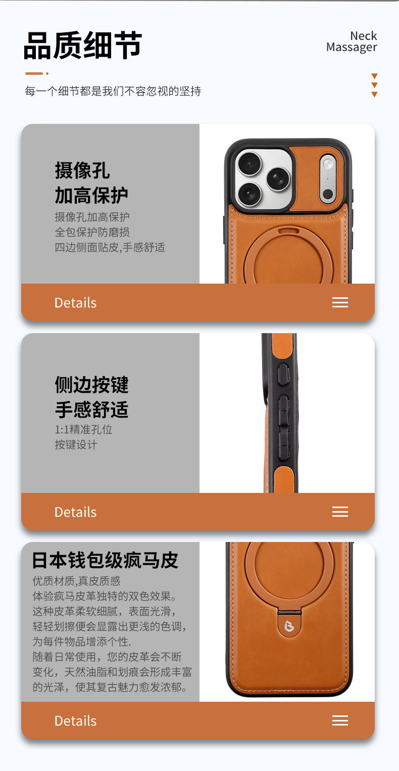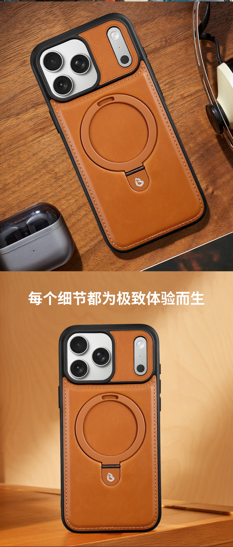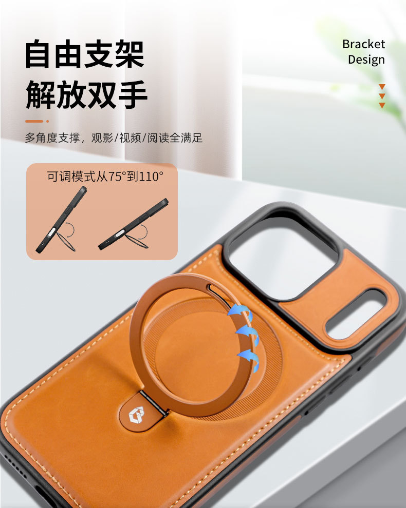适用iPhone17ProMax磁吸支架手机壳高档商务皮套苹果17防摔保护套
