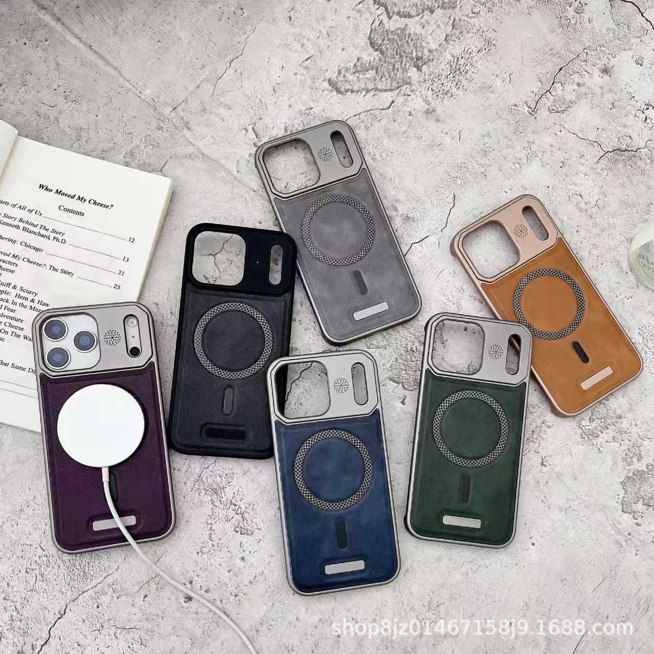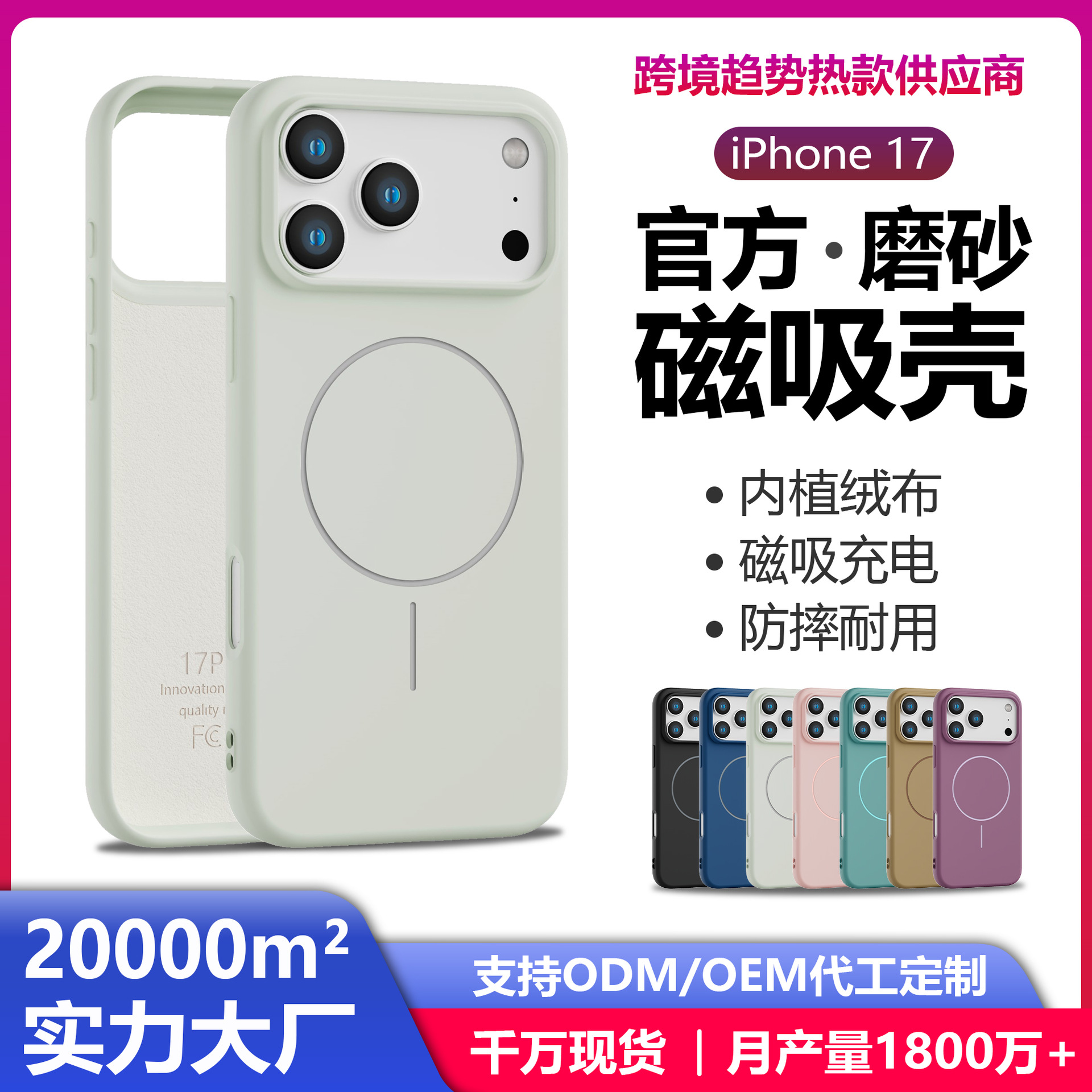 跨境适用iPhone17promax无边框手机壳苹果16plus皮质磁吸手工外壳