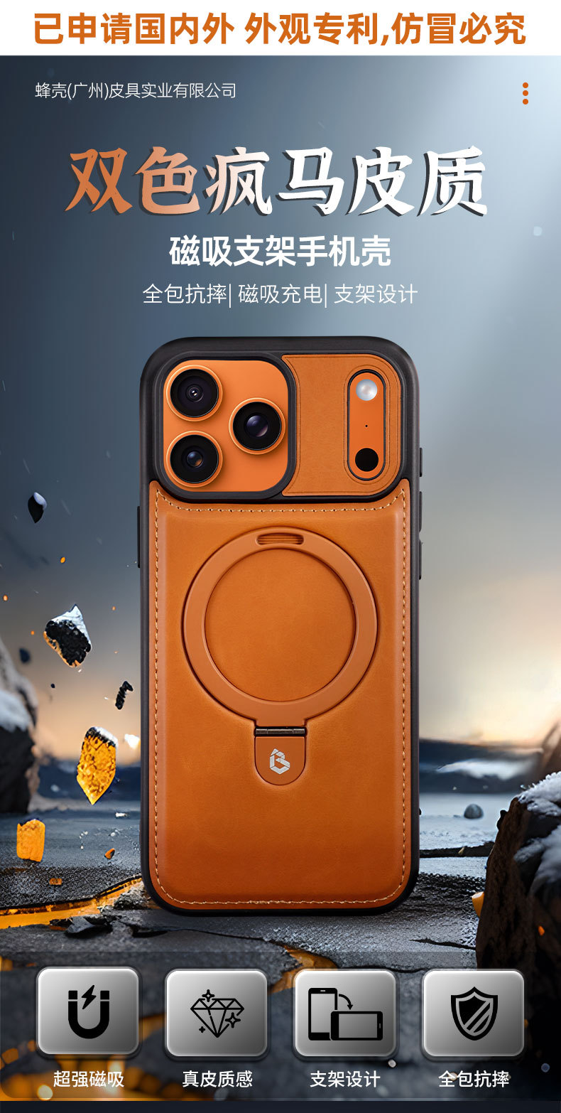 国境を越えた皮質リンゴ15promax携帯ケース磁気吸引スタンド全包転倒防止ビジネス科学技術携帯カバーのカスタマイズ