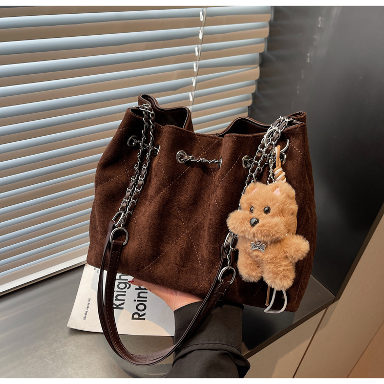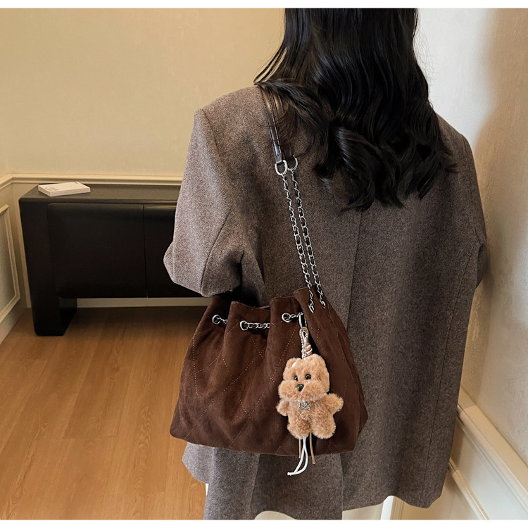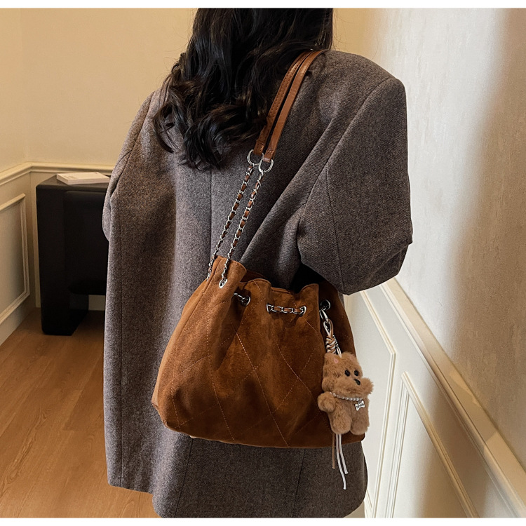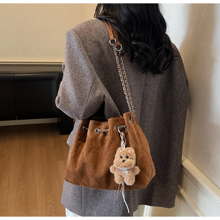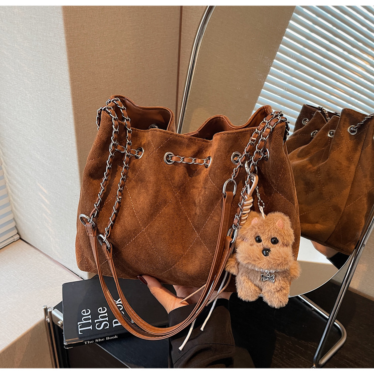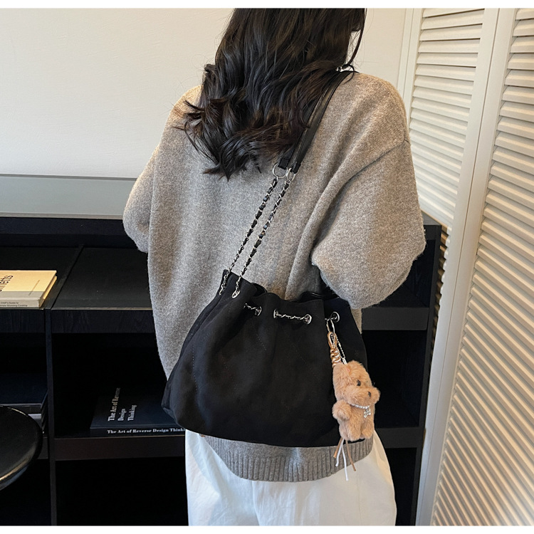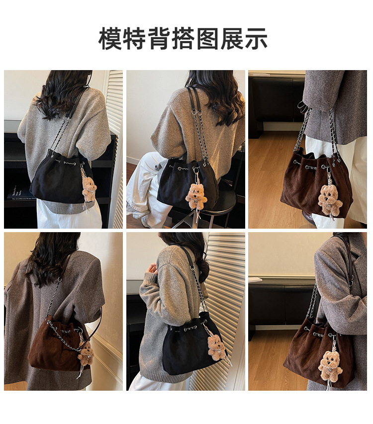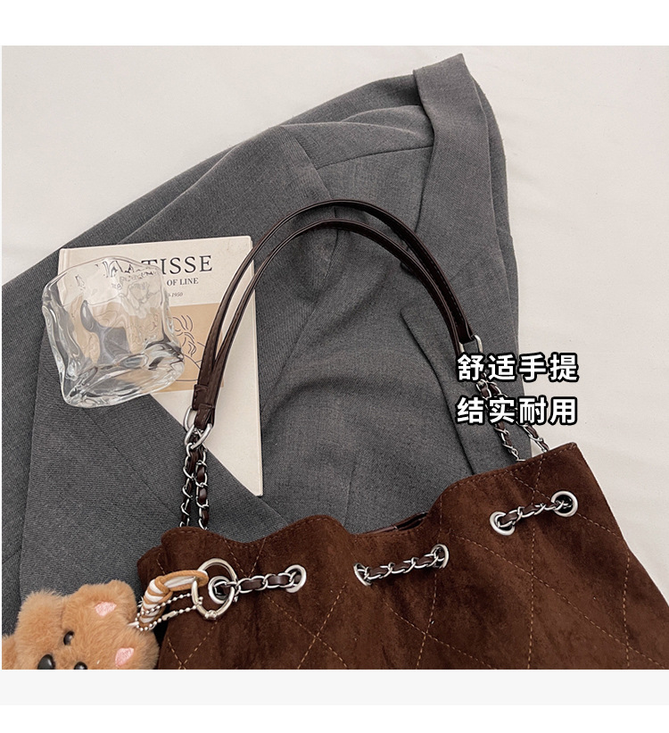 秋冬复古呢绒单肩包大容量抽绳简约斜挎包时尚气质链条托特包bags