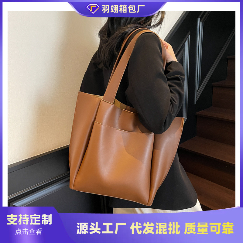 クロスボーダー高級感シンプル美ラドトートバッグ女性2024秋の大容量通勤韓国系ショルダーバッグ