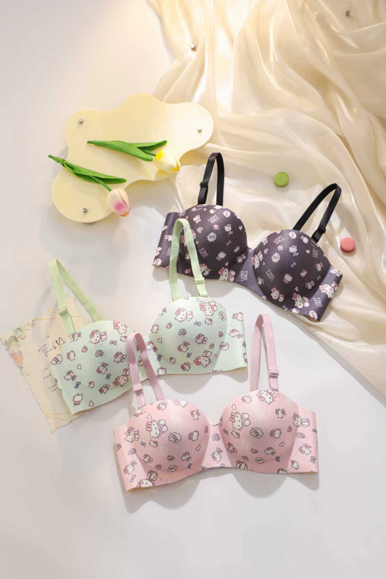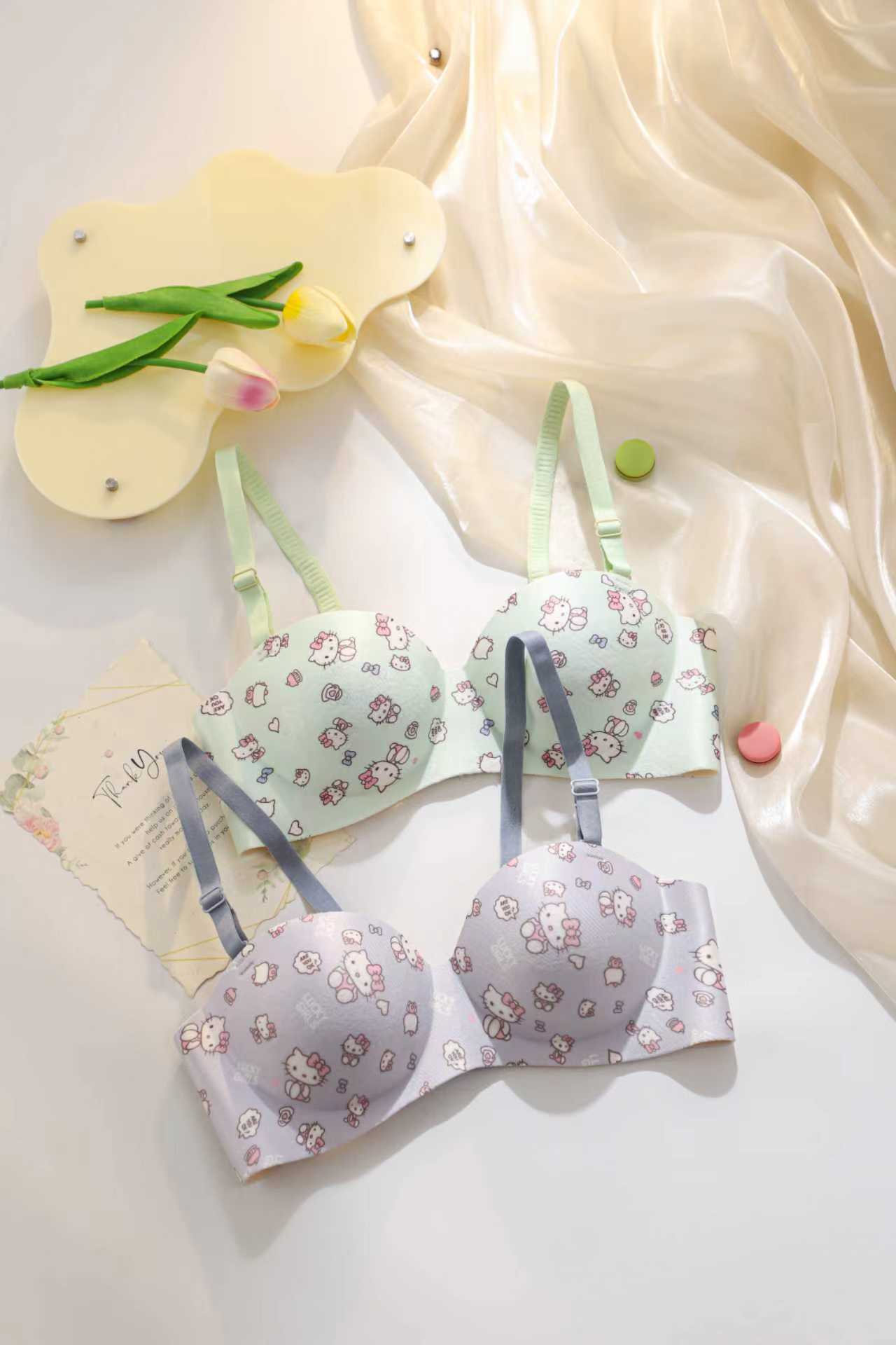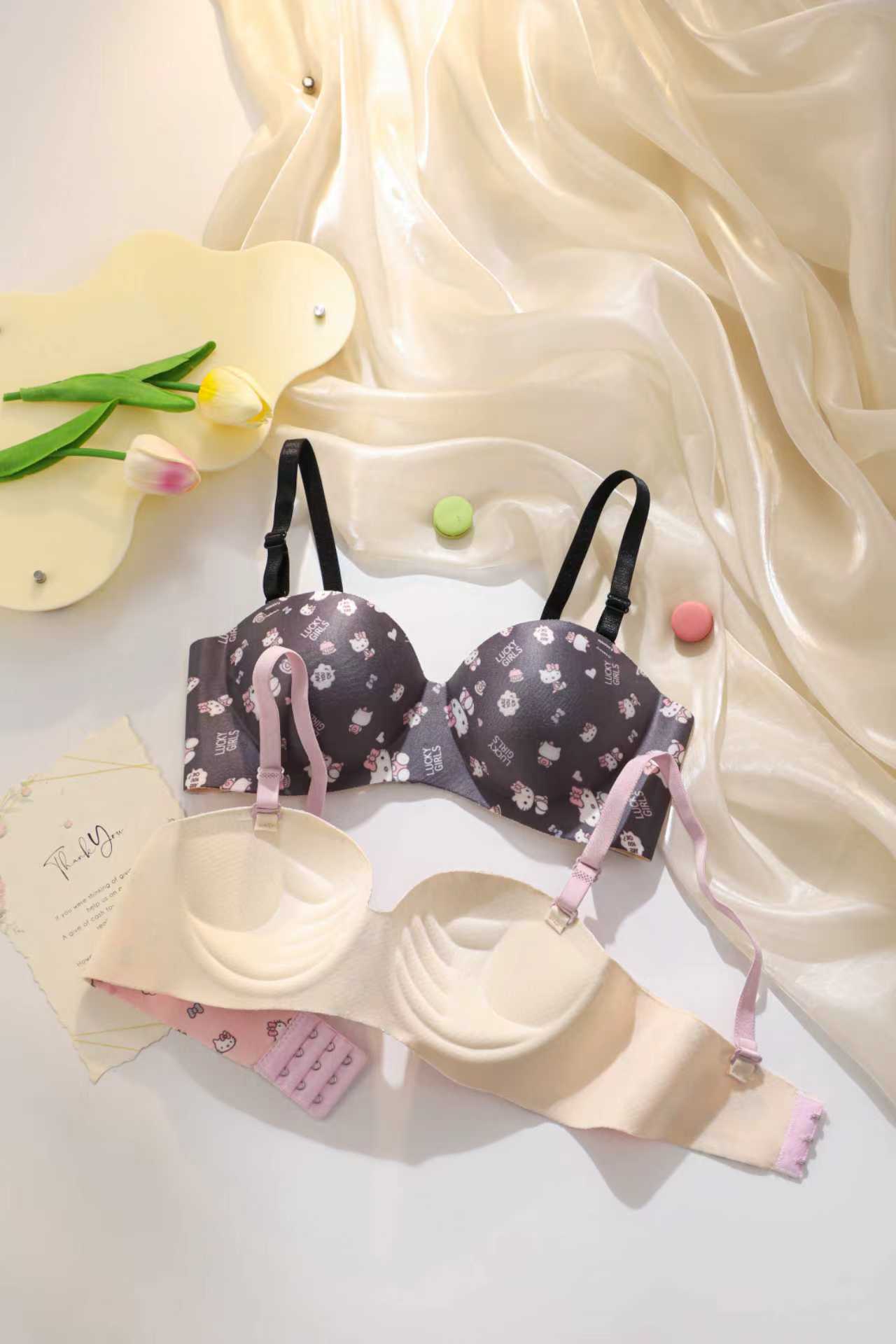 日系甜美少女内衣女小胸显圆聚拢无钢圈无痕加厚不空杯印花文胸罩