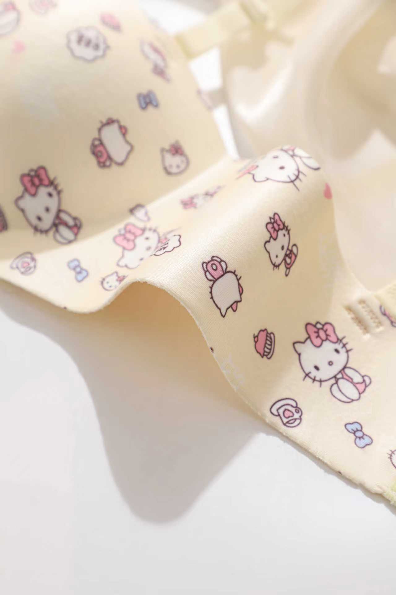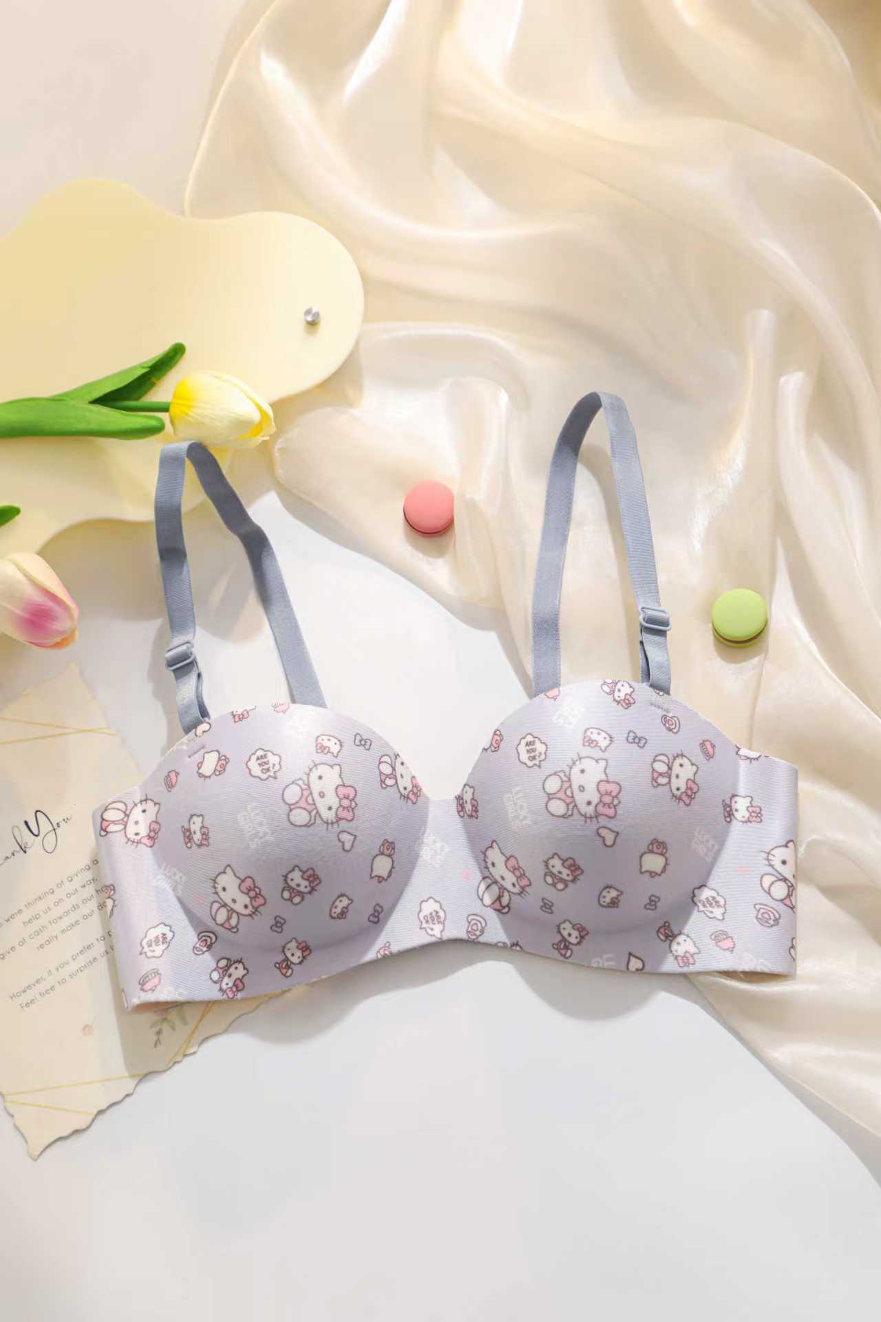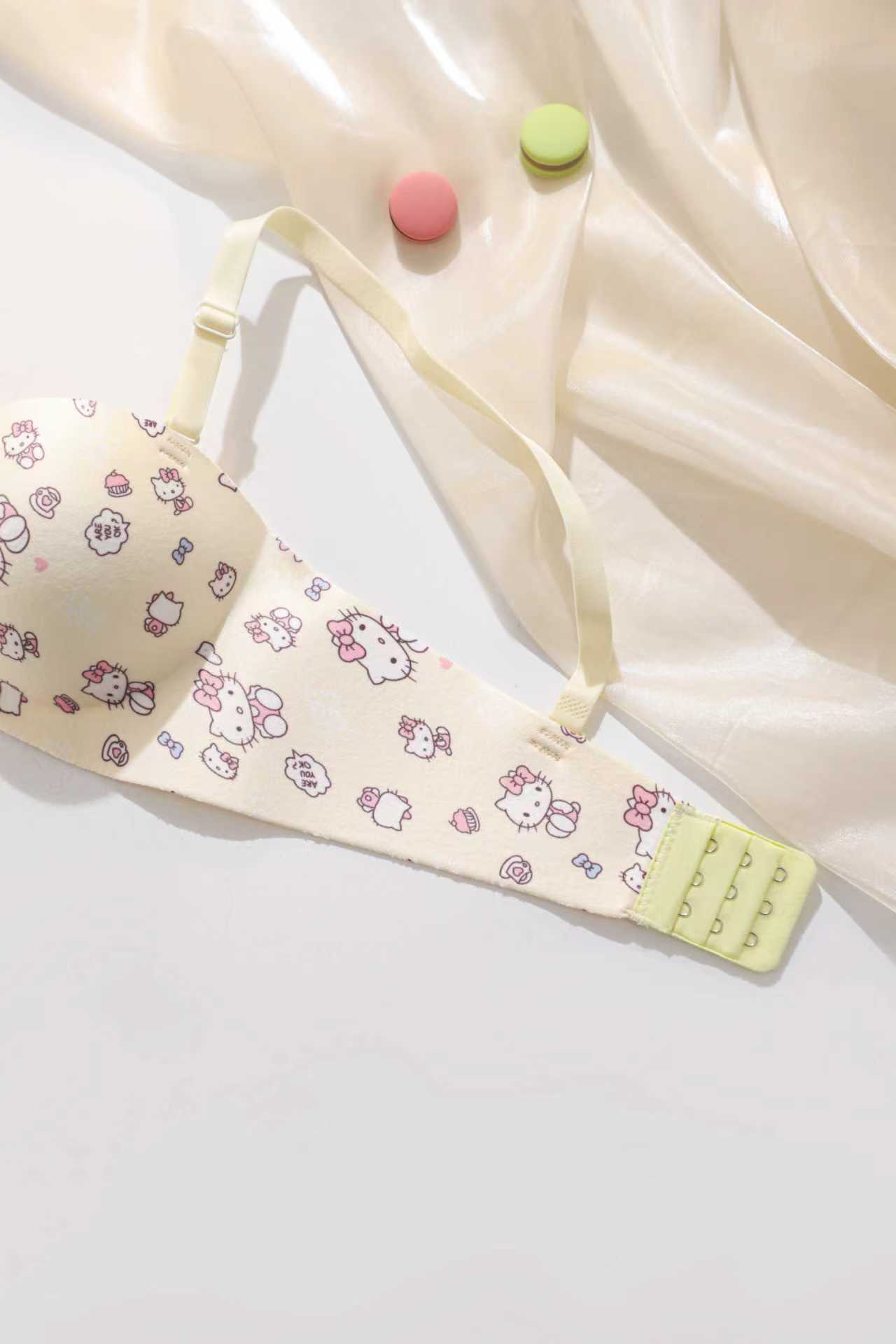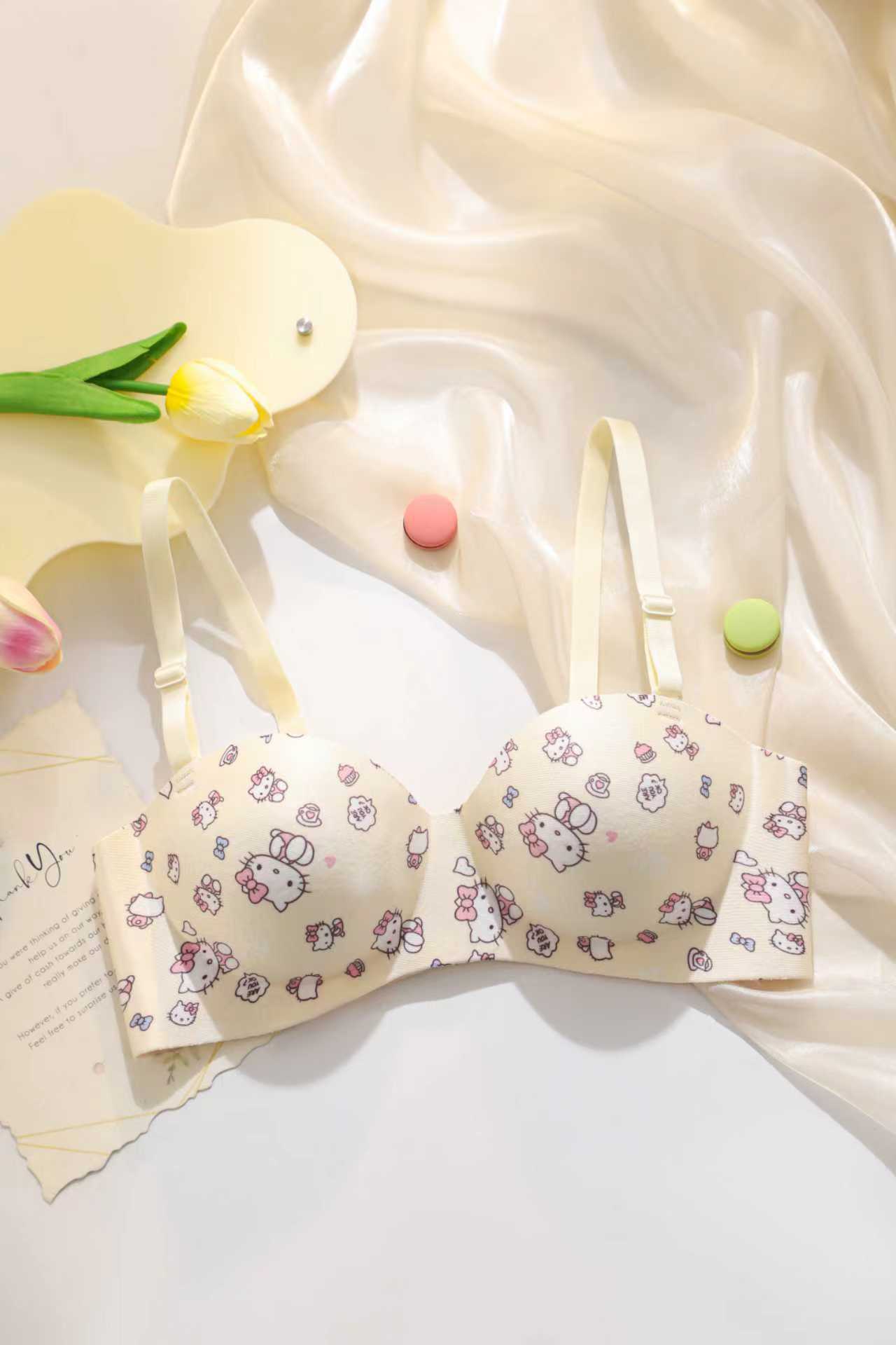 日系甜美少女内衣女小胸显圆聚拢无钢圈无痕加厚不空杯印花文胸罩