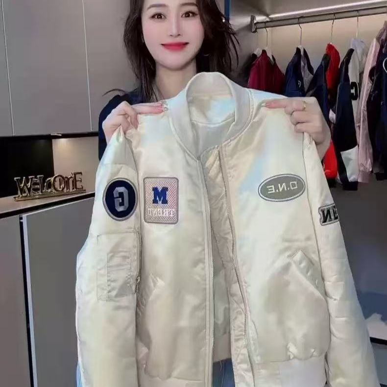 綿を挟んだアメリカ野球服のコート女性のショートタイプ2025年春秋新型爆発金と綿を加えた女性のパイロットジャケット