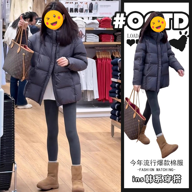 冬季2025新款通勤风穿搭气质棉服外套女韩版宽松简约纯色保暖棉衣