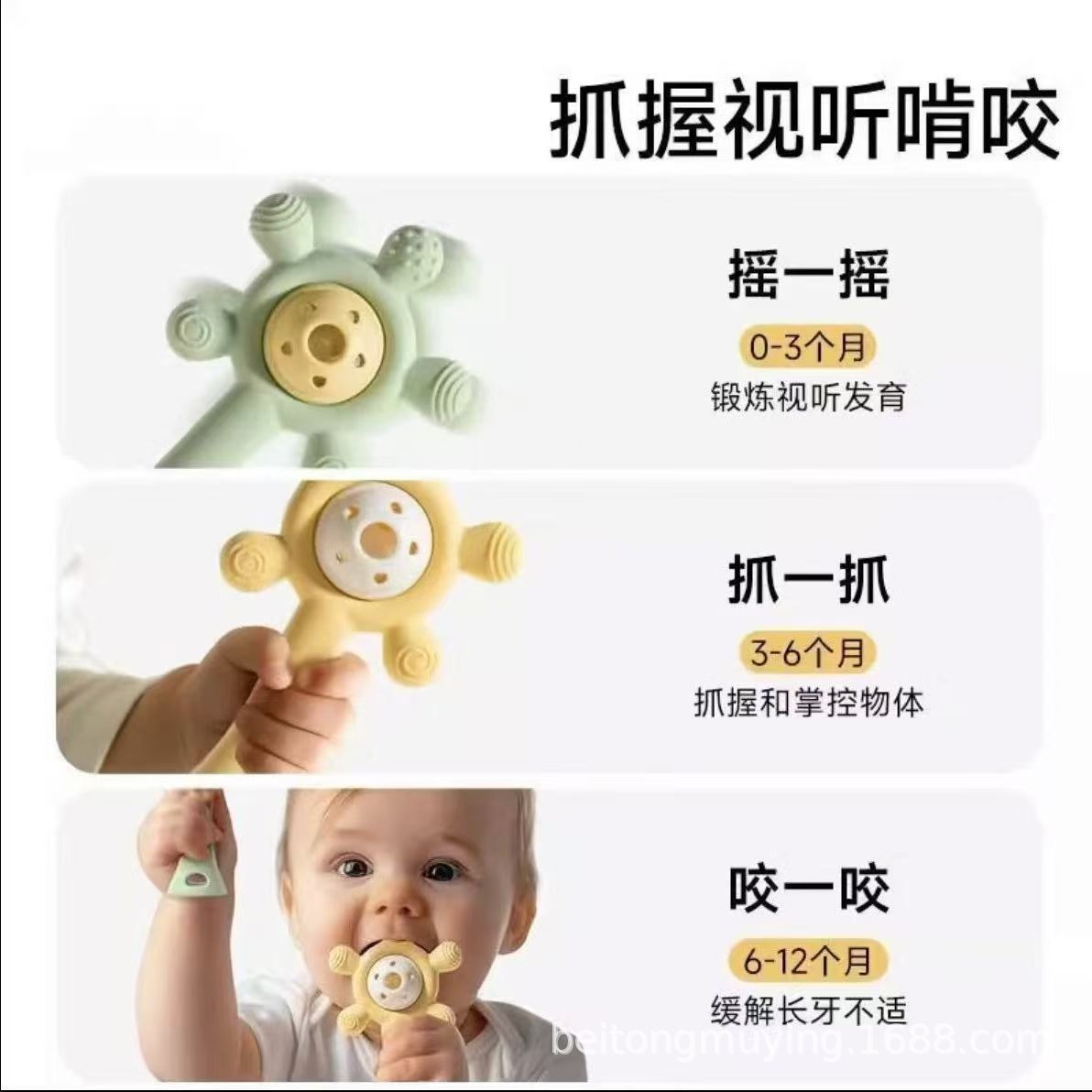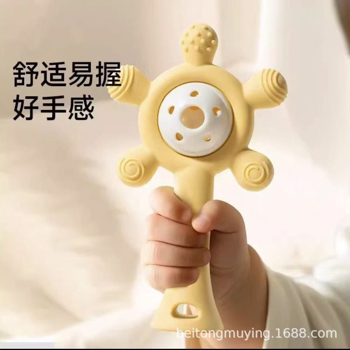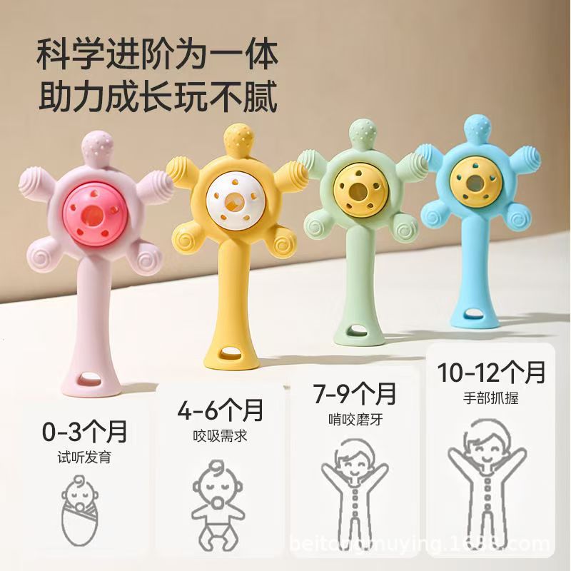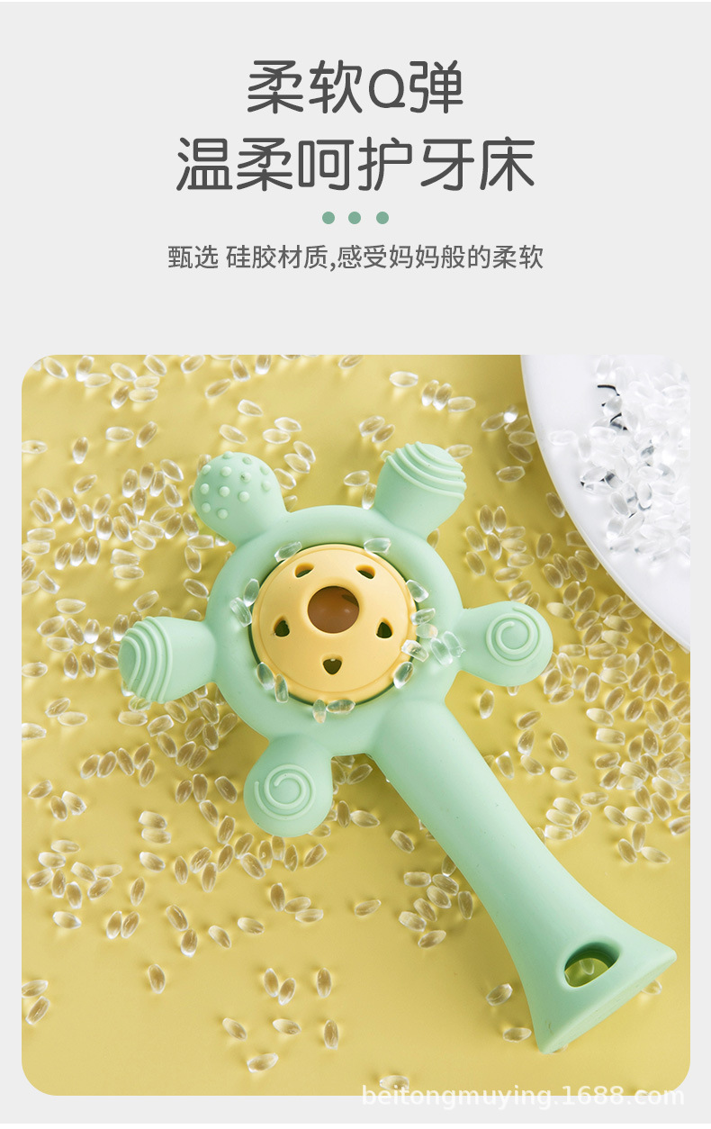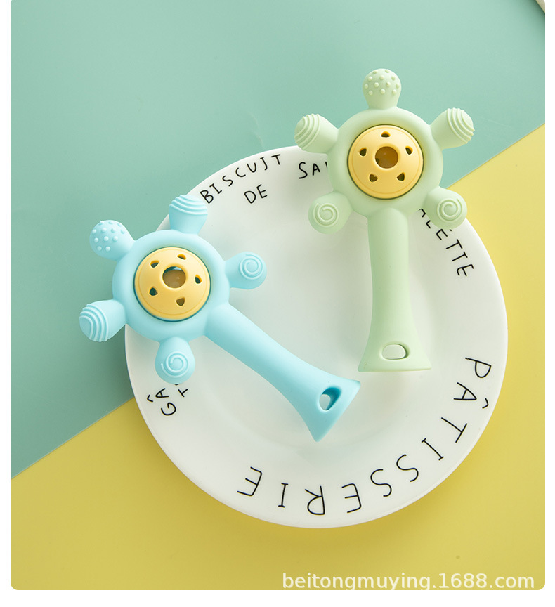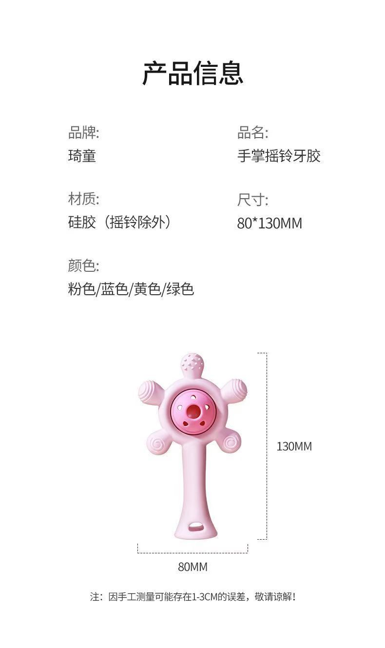 婴儿牙胶宝宝磨牙棒手摇铃玩具手掌硅胶咬咬乐可水煮防吃手安抚