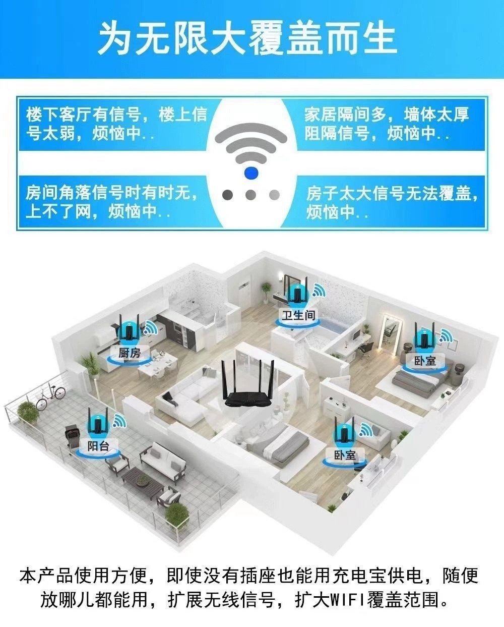 新款WiFi信号增强器路由器网络增强穿墙王卧室中继器扩展器放大器