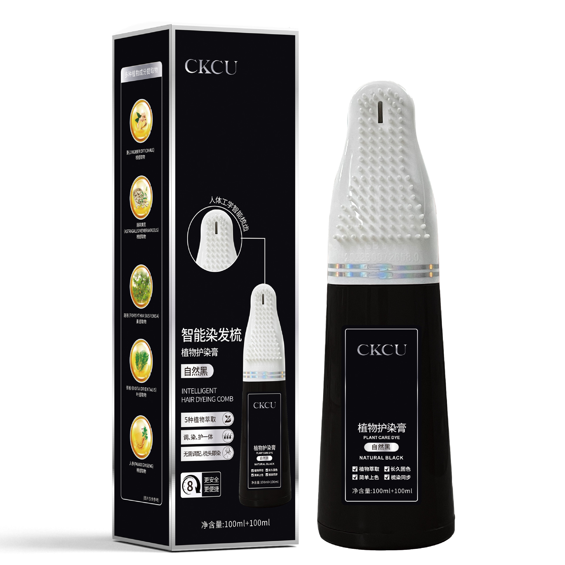 立方染发梳智能染发膏自然黑茶家用不沾手涂抹植物护发染发剂工具