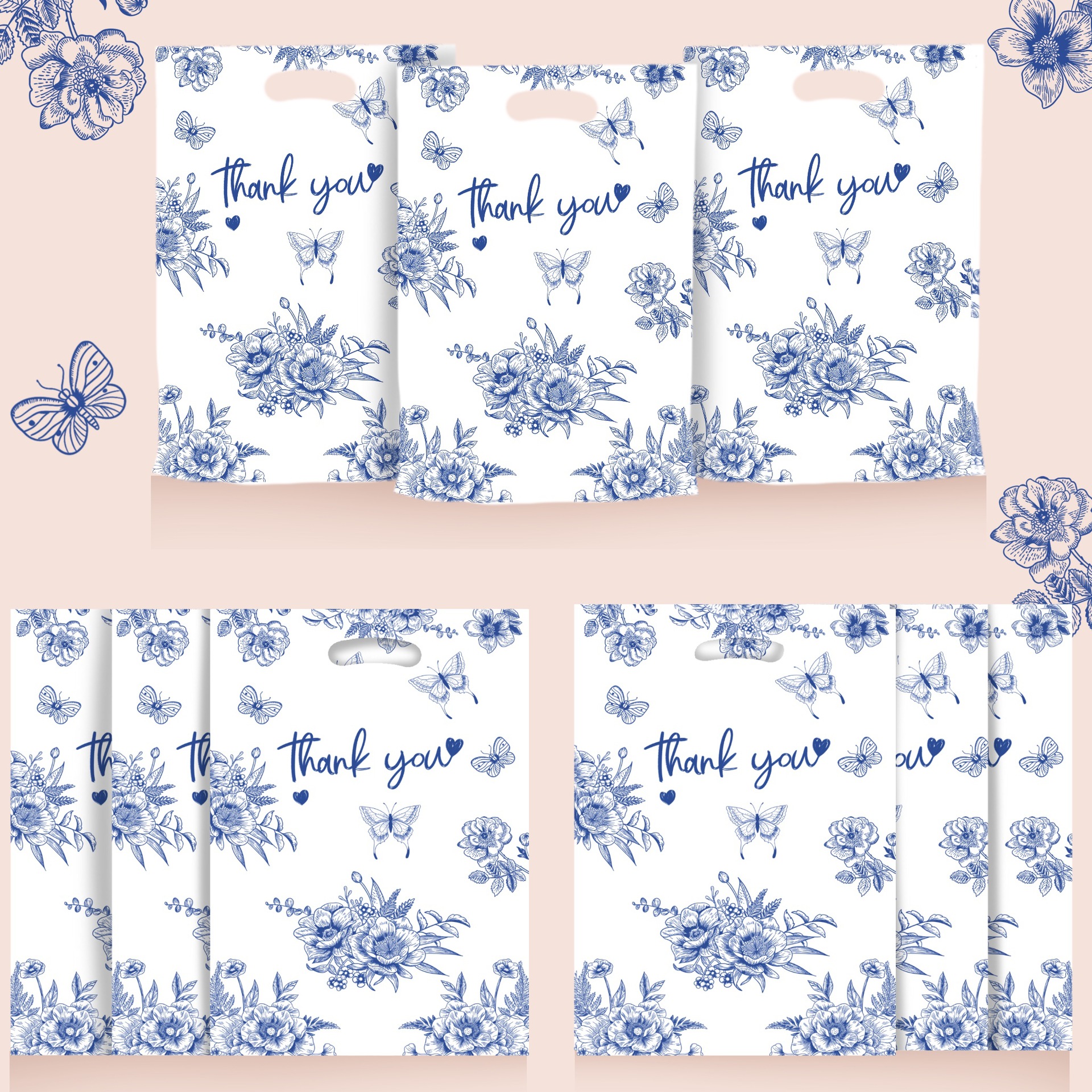 跨境花朵手提袋青花瓷图案thankyou礼品包装袋礼品送礼伴手礼品袋