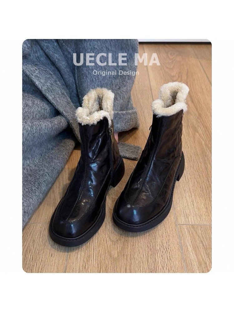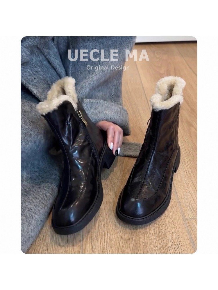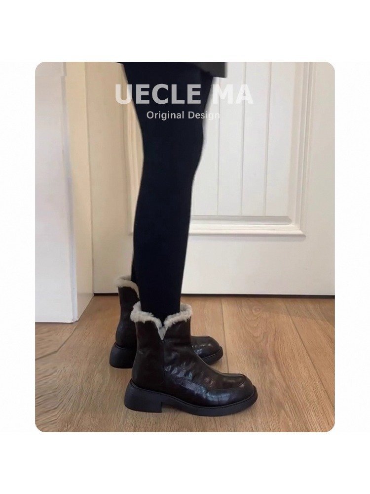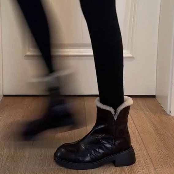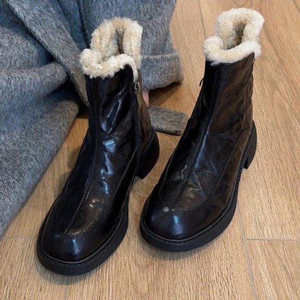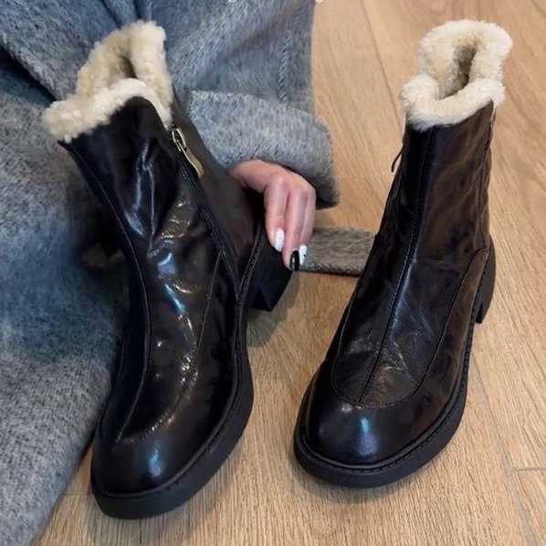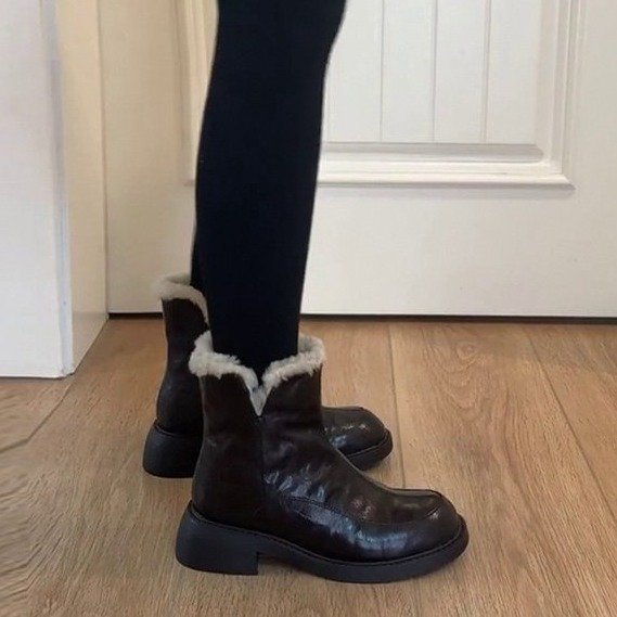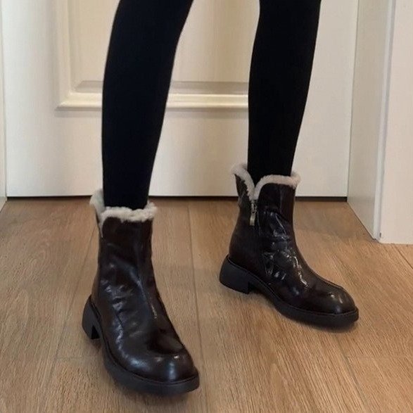 5.5cm厚底加绒2025年冬季极简时尚休闲小个子保暖复古短靴女